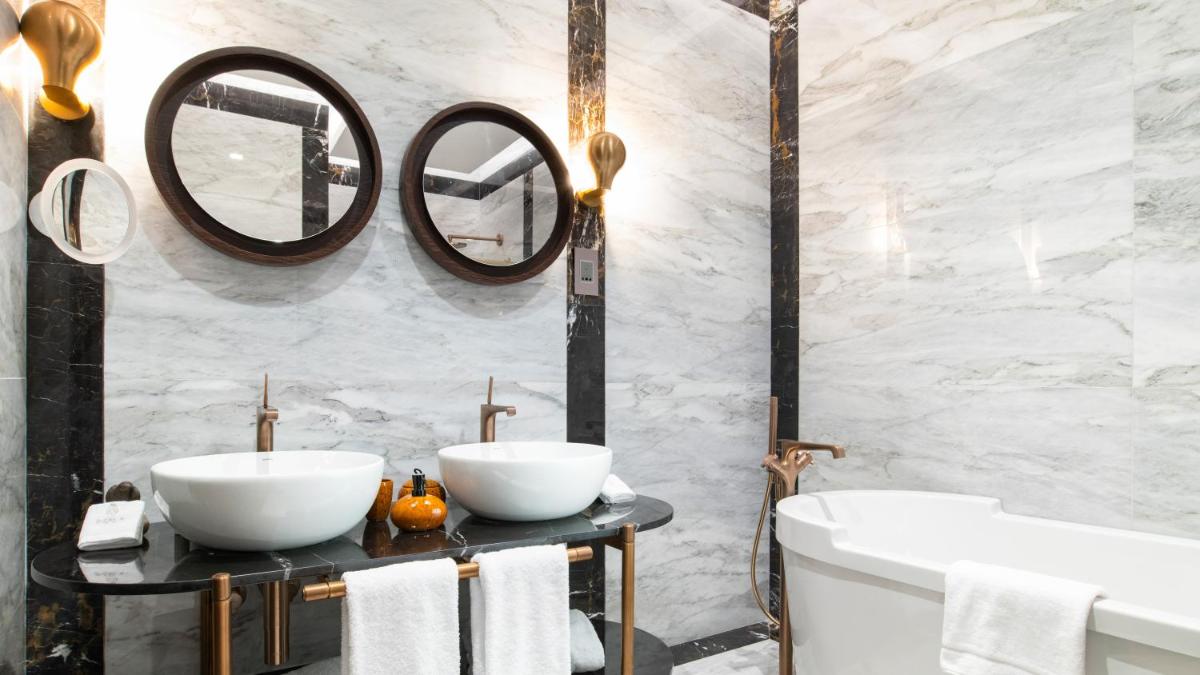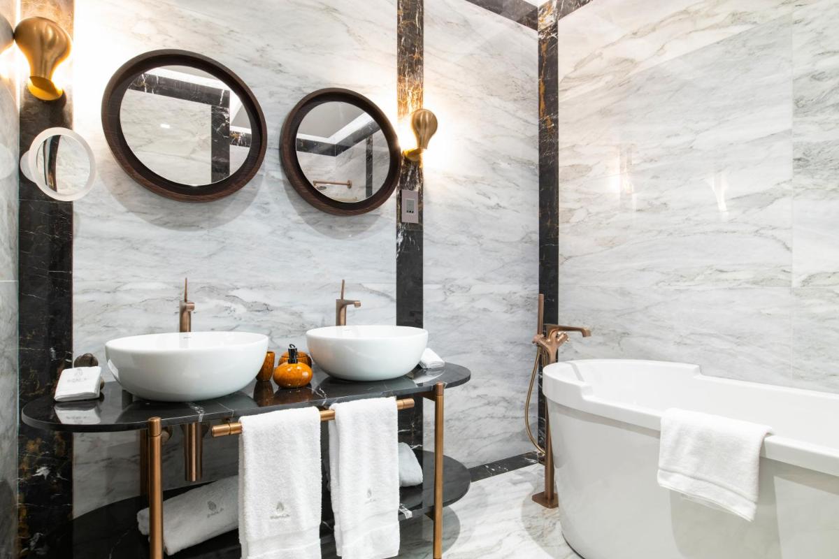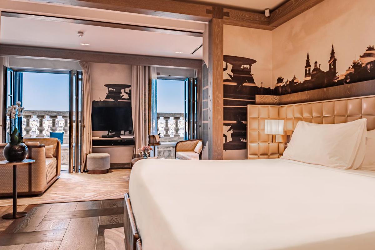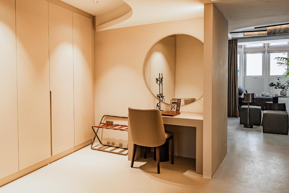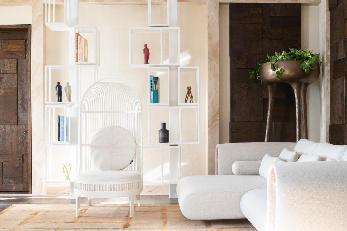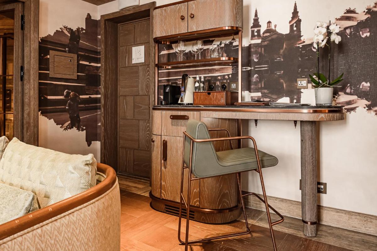 Los interiores han sido diseñados por estudios de arquitectura y diseño de renombre internacional, con un estilo que mezcla elegancia clásica y vanguardia moderna. Cada suite y habitación es única, caracterizada por acabados de lujo, mobiliario de diseño y una particular atención al arte contemporáneo, que se integra perfectamente con la historia del edificio.