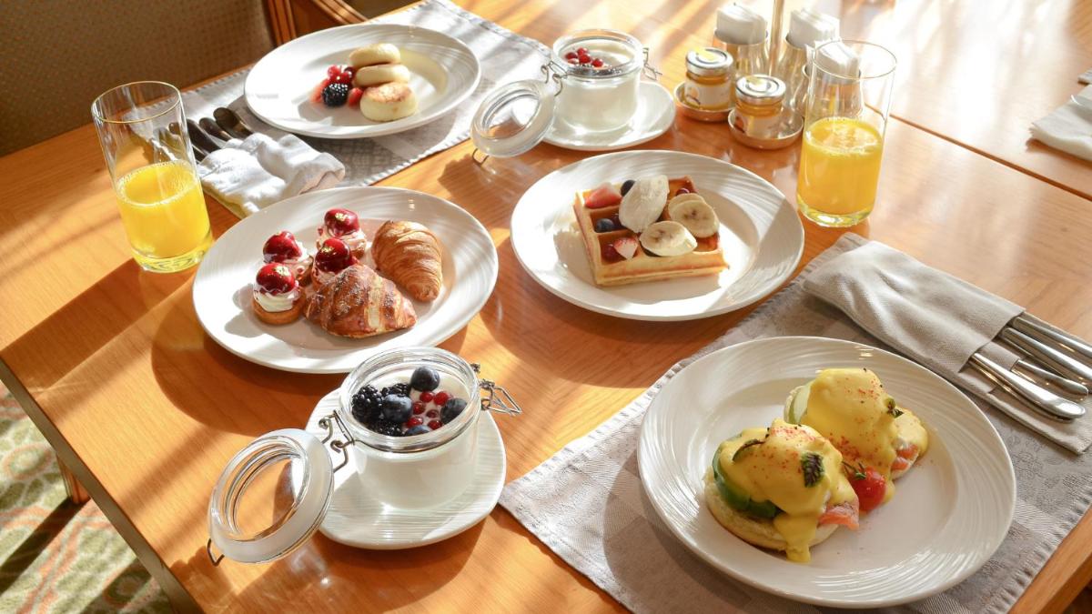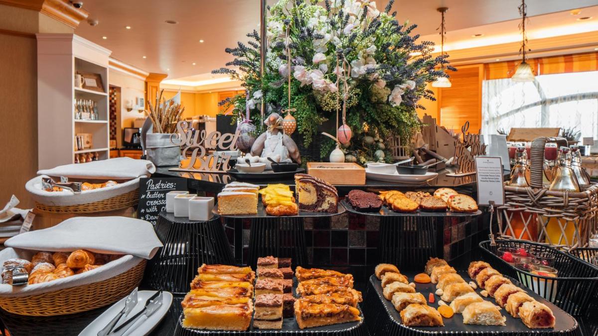 Cada mañana se sirve un desayuno buffet en el restaurante Olivera, que elabora platos europeos y asiáticos. El restaurante Comme il Faut, de ambiente elegante, prepara especialidades francesas y ucranianas. El moderno bar b-hush tiene vistas panorámicas a la ciudad y prepara cócteles exóticos.