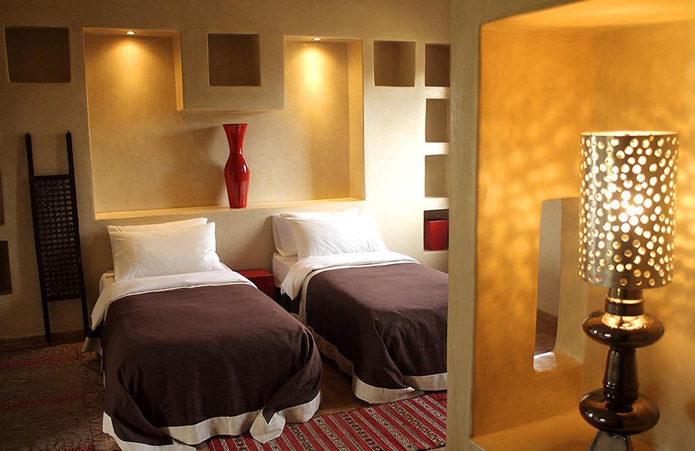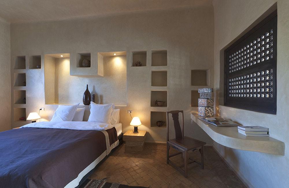 La propiedad está rodeada de amplios jardines orgánicos, olivos y cítricos, creando un ambiente fresco y perfumado. La arquitectura de las habitaciones y suites es tradicional, con un diseño que privilegia los materiales naturales y la armonía con el paisaje.