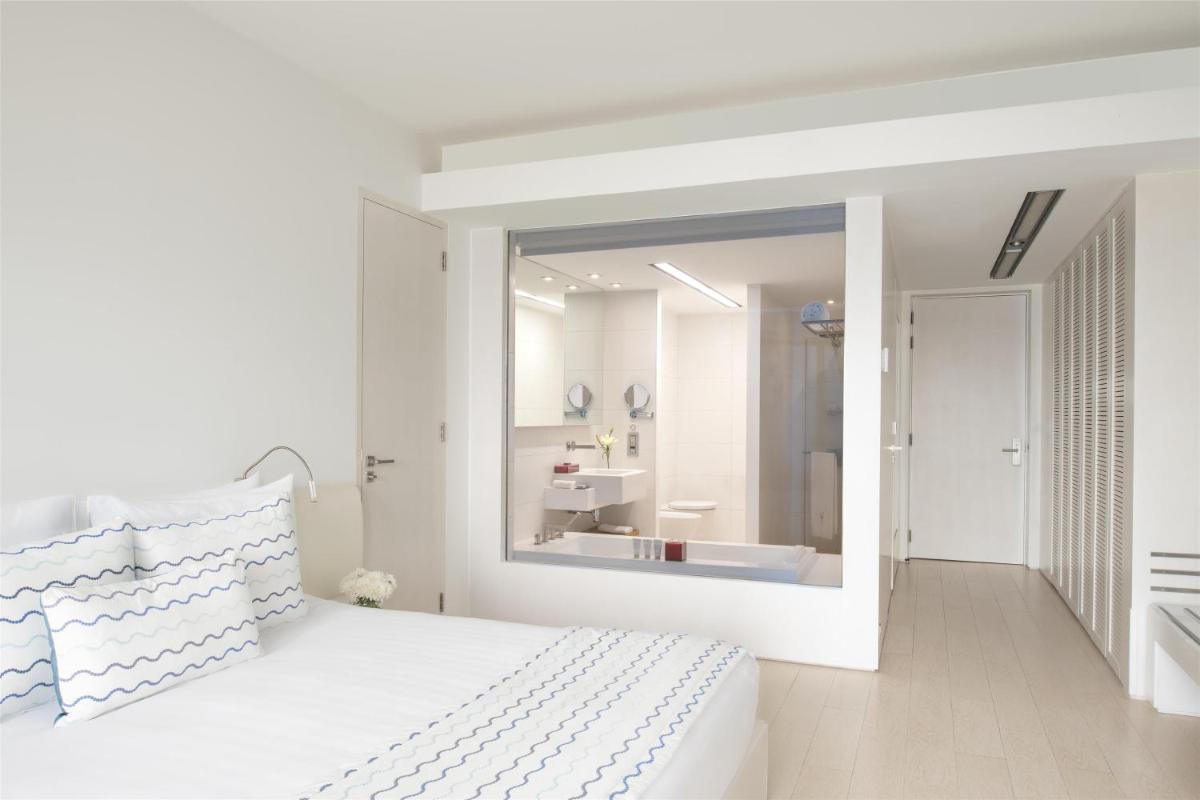Los alojamientos están diseñados para ser luminosos y aireados, reflejando la serenidad del entorno marino. Disponen de TV vía satélite de pantalla plana, baños espaciosos con albornoces y comodidades modernas. La atención al detalle y el uso inteligente de la luz natural crean una atmósfera de paz y refinamiento en cada rincón.