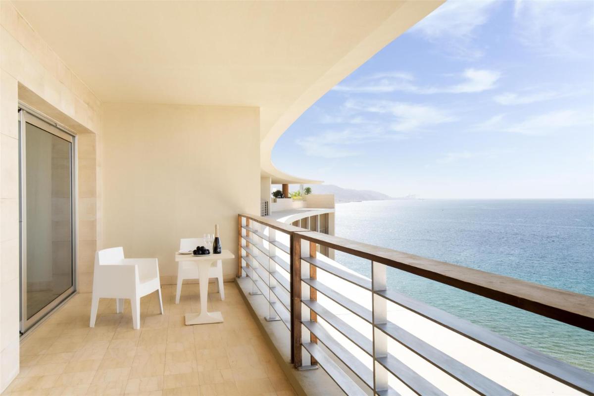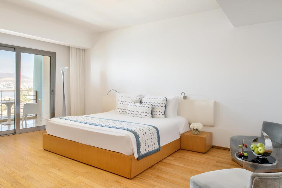Habitación con 1 cama extragrande y balcón privado con vistas al mar Rojo y al golfo de Áqaba. Habitación con aire acondicionado, TV de pantalla plana, escritorio y salón. También incluye artículos de aseo de lujo, zapatillas, albornoces, secador de pelo, minibar gratuito (refrescos y agua), conexión a internet por cable y WiFi gratuitas, set de té/café gratuito, prensa local gratuita y carta de almohadas.