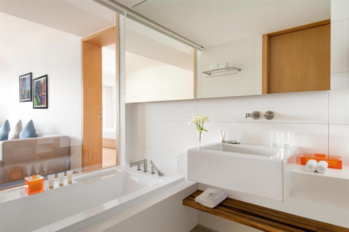 Suite con 1 cama extragrande y terraza amplia con vistas al mar Rojo y al golfo de Áqaba. Esta suite cuenta con aire acondicionado, salón, zona de comedor y escritorio. El baño tiene ventana de cristal con vistas al mar, bañera independiente, ducha a ras de suelo y espejo de aumento. También incluye artículos de aseo de lujo, zapatillas, albornoces, secador de pelo, minibar gratuito (refrescos y agua), conexión a internet por cable gratuita, set de té/café gratuito, prensa local gratuita y carta de almohadas.