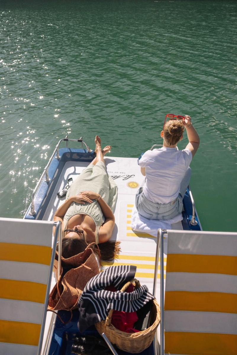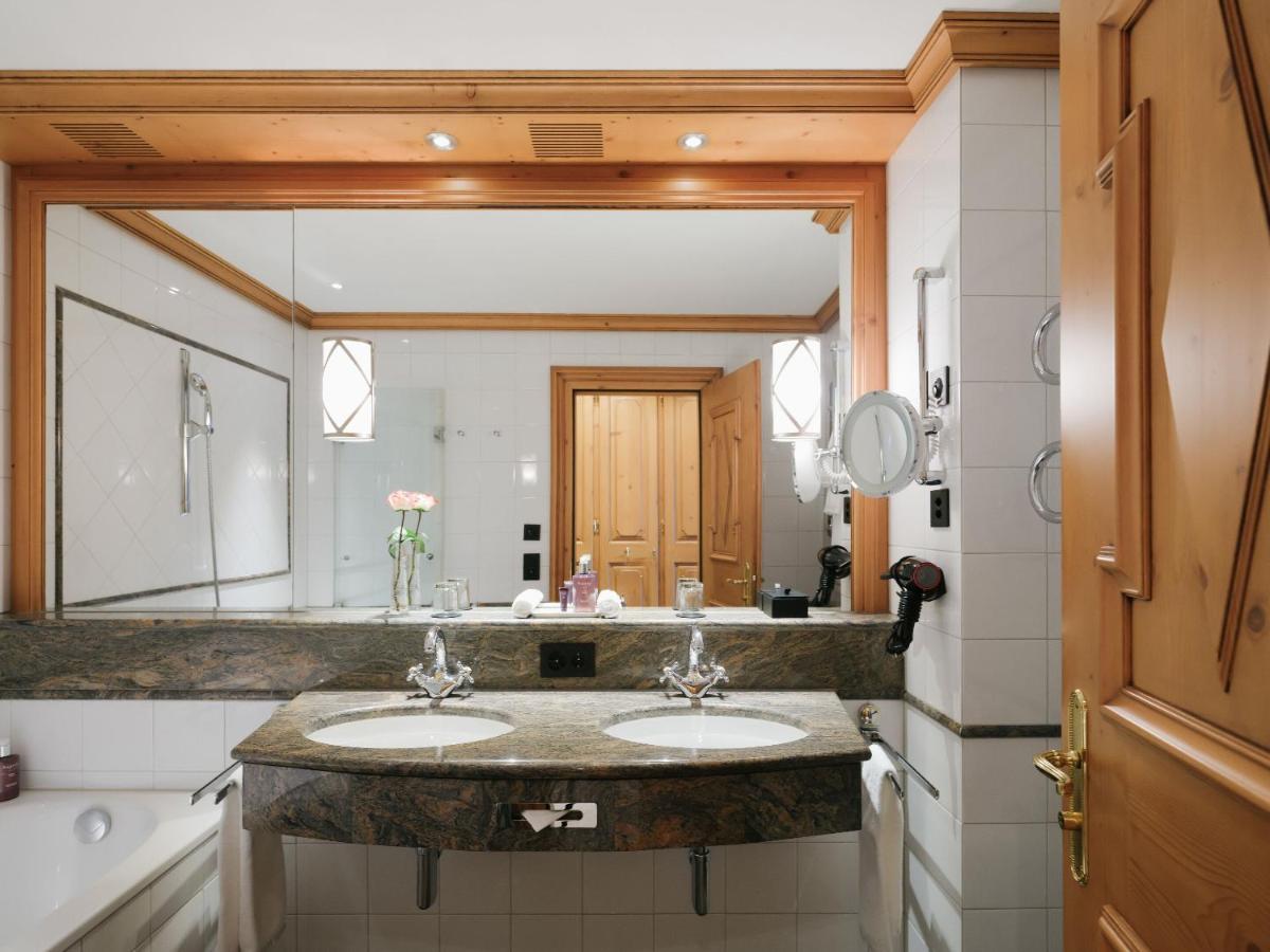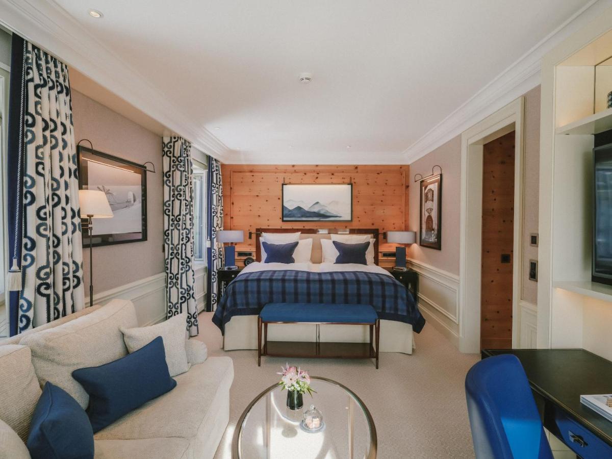 Los interiores combinan el encanto histórico con un lujo discreto y contemporáneo. Las habitaciones y suites están elegantemente amuebladas con maderas nobles y telas cálidas, ofreciendo una atmósfera de confort alpino. Muchas dan al sur, asegurando la luz del sol y una vista excepcional del lago congelado en invierno y los prados en verano.