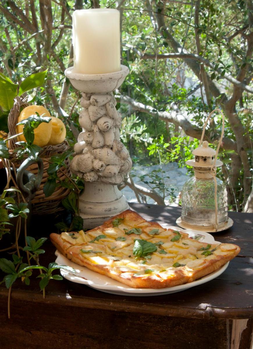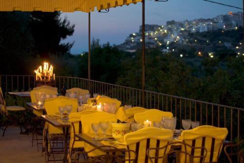El desayuno incluye pasteles caseros, ricotta fresca, miel y zumo de naranja. El restaurante panorámico sirve cocina moderna inspirada en los sabores tradicionales del Gargano con ingredientes frescos y de proximidad.