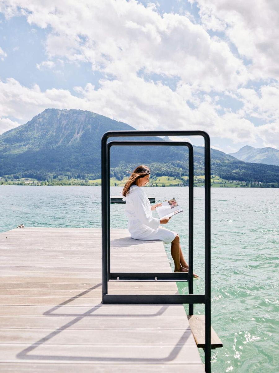 El hotel cuenta con una posición privilegiada con su playa privada y acceso directo al Wolfgangsee. Los huéspedes pueden disfrutar de deportes acuáticos, tomar el sol en el muelle o darse un baño refrescante. Es un lugar de absoluta quietud, lejos de la multitud, ideal para la relajación contemplativa.