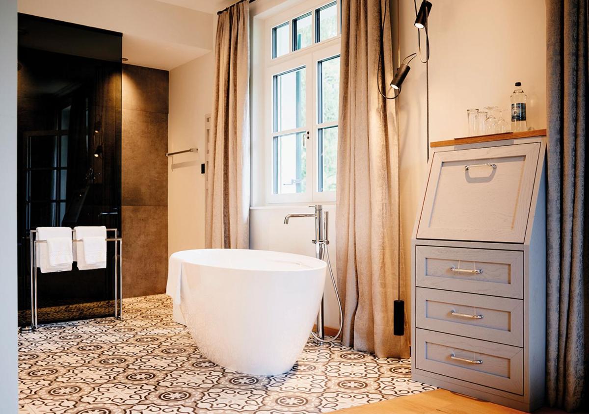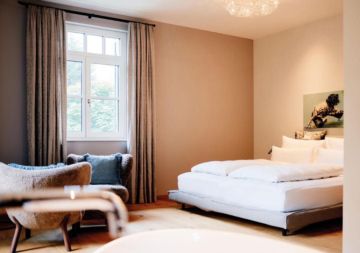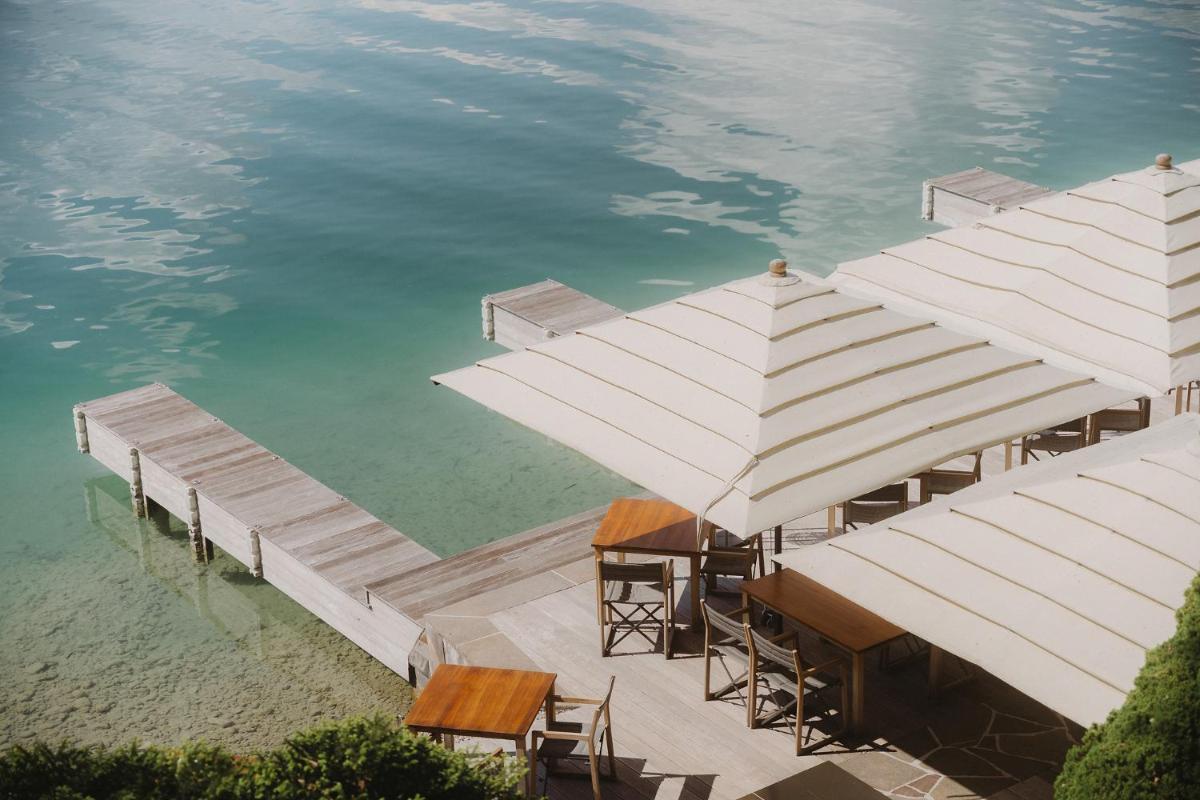 El diseño de interiores conserva el auténtico encanto de una residencia de campo de lujo del siglo XX, con muebles de época, boiserie y chimeneas. Las habitaciones están decoradas individualmente, ofreciendo a los huéspedes una experiencia única, como en una casa privada. Muchas ofrecen vistas encantadoras al lago y a las montañas circundantes.