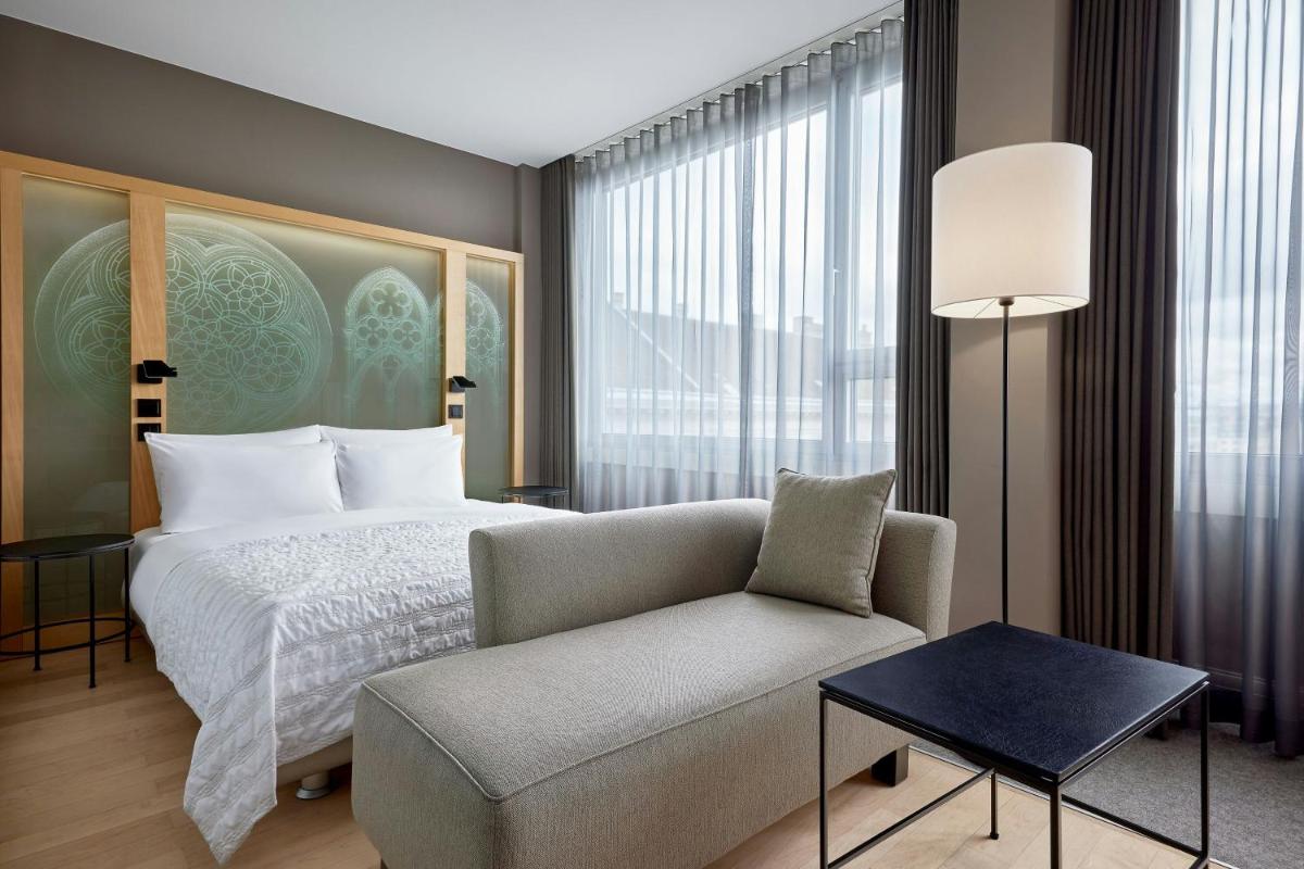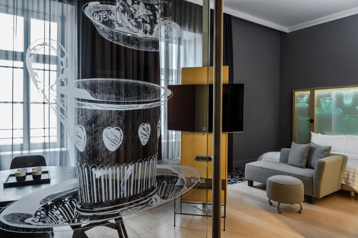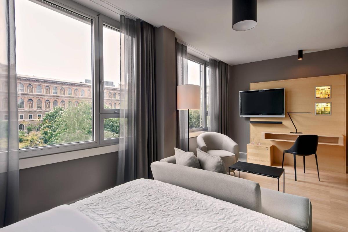Las habitaciones y suites son amplias y luminosas, caracterizadas por un diseño minimalista pero cálido, con un enfoque particular en los detalles artísticos. Cuentan con camas lujosas y un baño de mármol con ducha de efecto lluvia. Muchas habitaciones gozan de una vista encantadora de las avenidas arboladas de la Ringstraße.