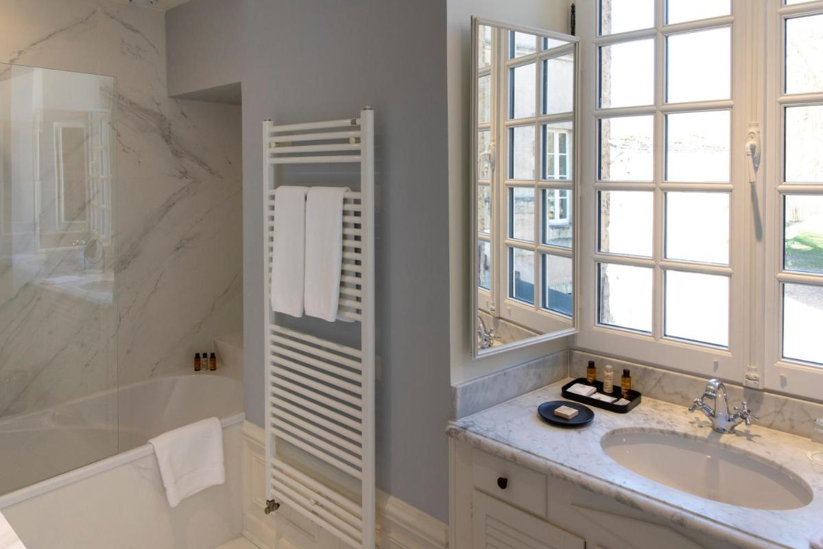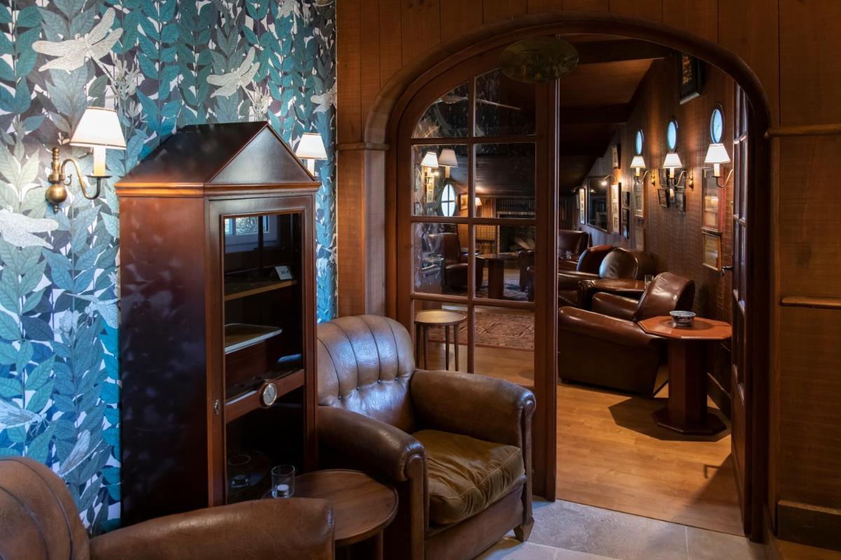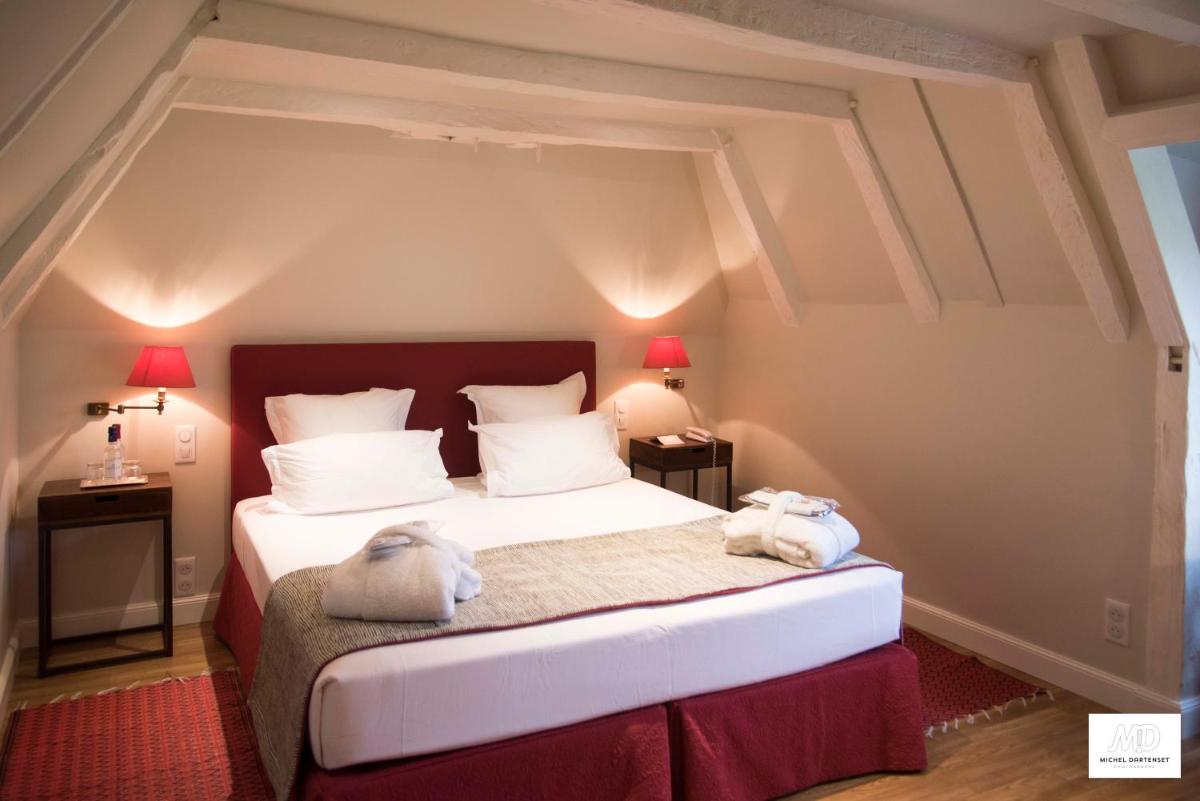 El hotel conserva el encanto rústico y la autenticidad de sus orígenes, con vigas de madera a la vista, paredes de piedra y chimeneas imponentes. Las habitaciones y suites, amuebladas con muebles antiguos y telas de prestigio, ofrecen una atmósfera íntima y acogedora. Cada espacio está diseñado para garantizar tranquilidad y descanso, con una vista relajante del parque o los jardines floridos.