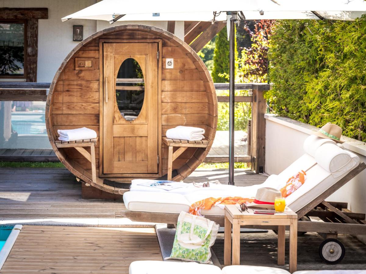 El corazón de la 'aldea' es la hermosa piscina exterior climatizada, accesible todo el año, rodeada de chalets e ideal para nadar o relajarse con vistas a las montañas. El área de bienestar incluye una sauna nórdica al aire libre, un hammam de mosaico y un hidromasaje (spa de nage), ofreciendo una experiencia de relajación típica de los países escandinavos y un verdadero alivio después de esquiar.
