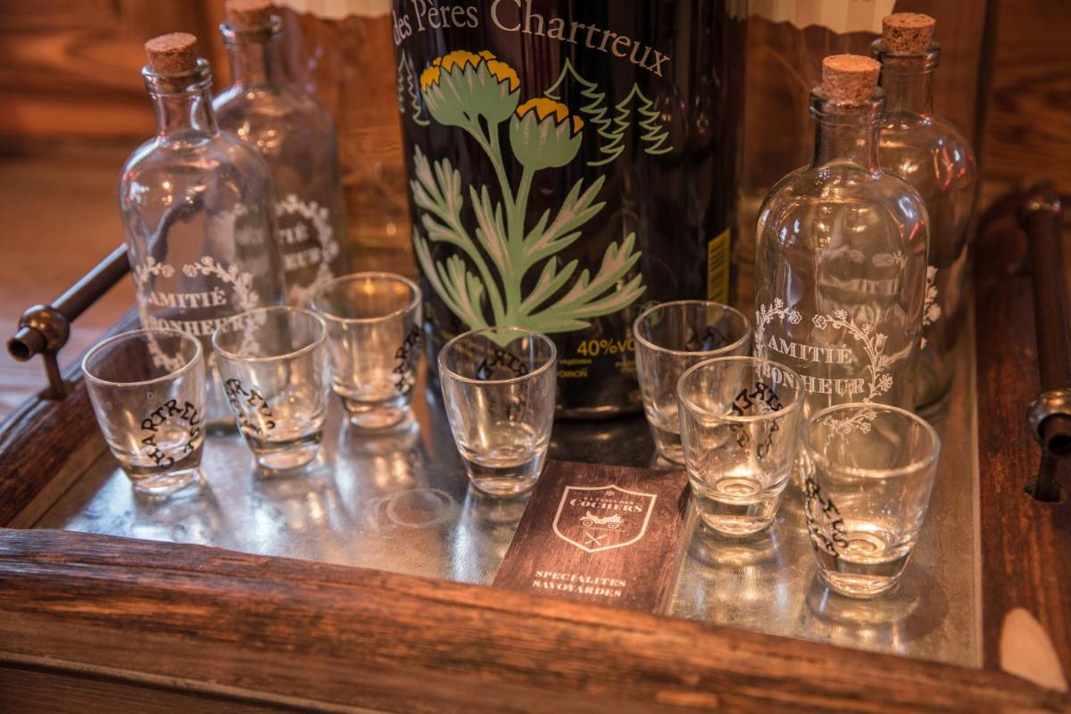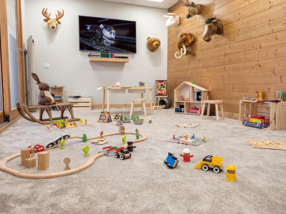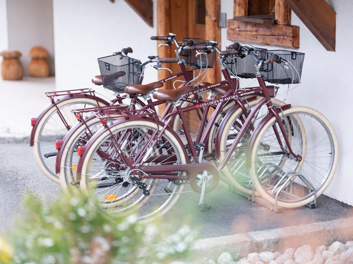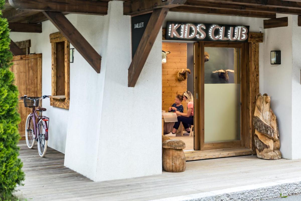 El alojamiento está organizado en varios chalets que albergan apartamentos y habitaciones, todos decorados en un estilo que mezcla el diseño saboyano tradicional con toques de elegancia nórdica. Los apartamentos son espaciosos, equipados con cocinas bien equipadas y chimeneas (en algunos), asegurando una estancia cómoda y autónoma. El uso de madera clara y telas naturales confiere una atmósfera luminosa y serena.