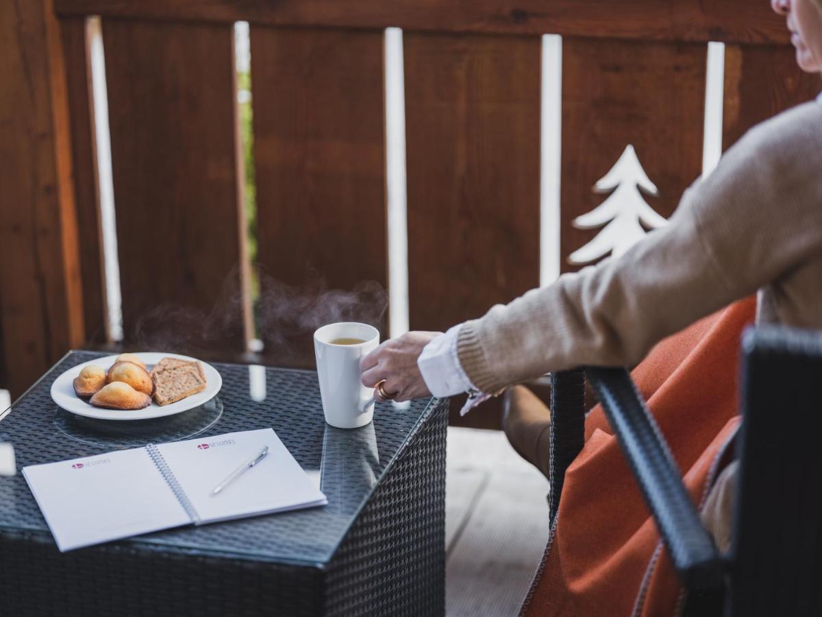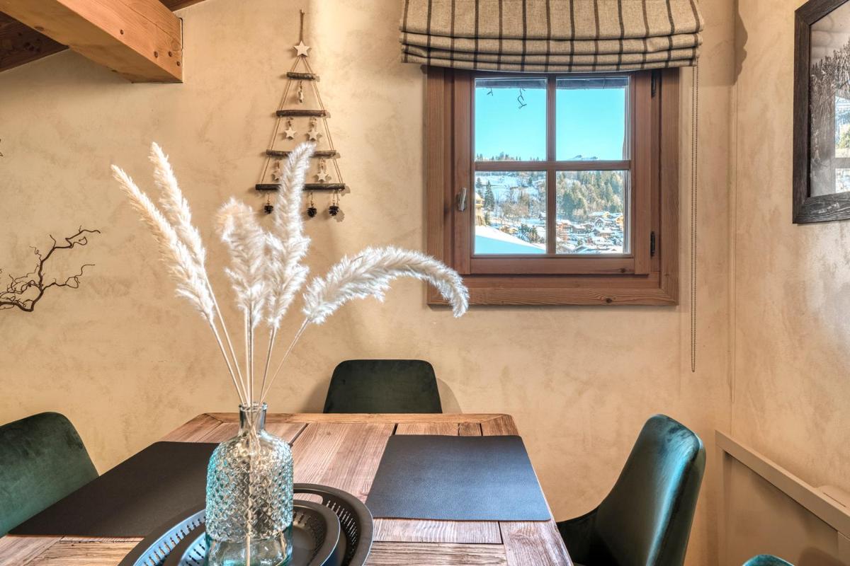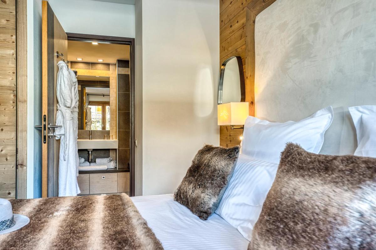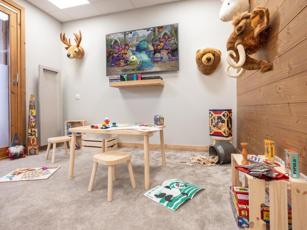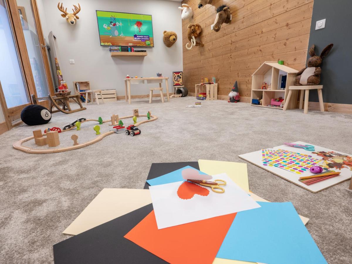 El alojamiento está organizado en varios chalets que albergan apartamentos y habitaciones, todos decorados en un estilo que mezcla el diseño saboyano tradicional con toques de elegancia nórdica. Los apartamentos son espaciosos, equipados con cocinas bien equipadas y chimeneas (en algunos), asegurando una estancia cómoda y autónoma. El uso de madera clara y telas naturales confiere una atmósfera luminosa y serena.