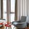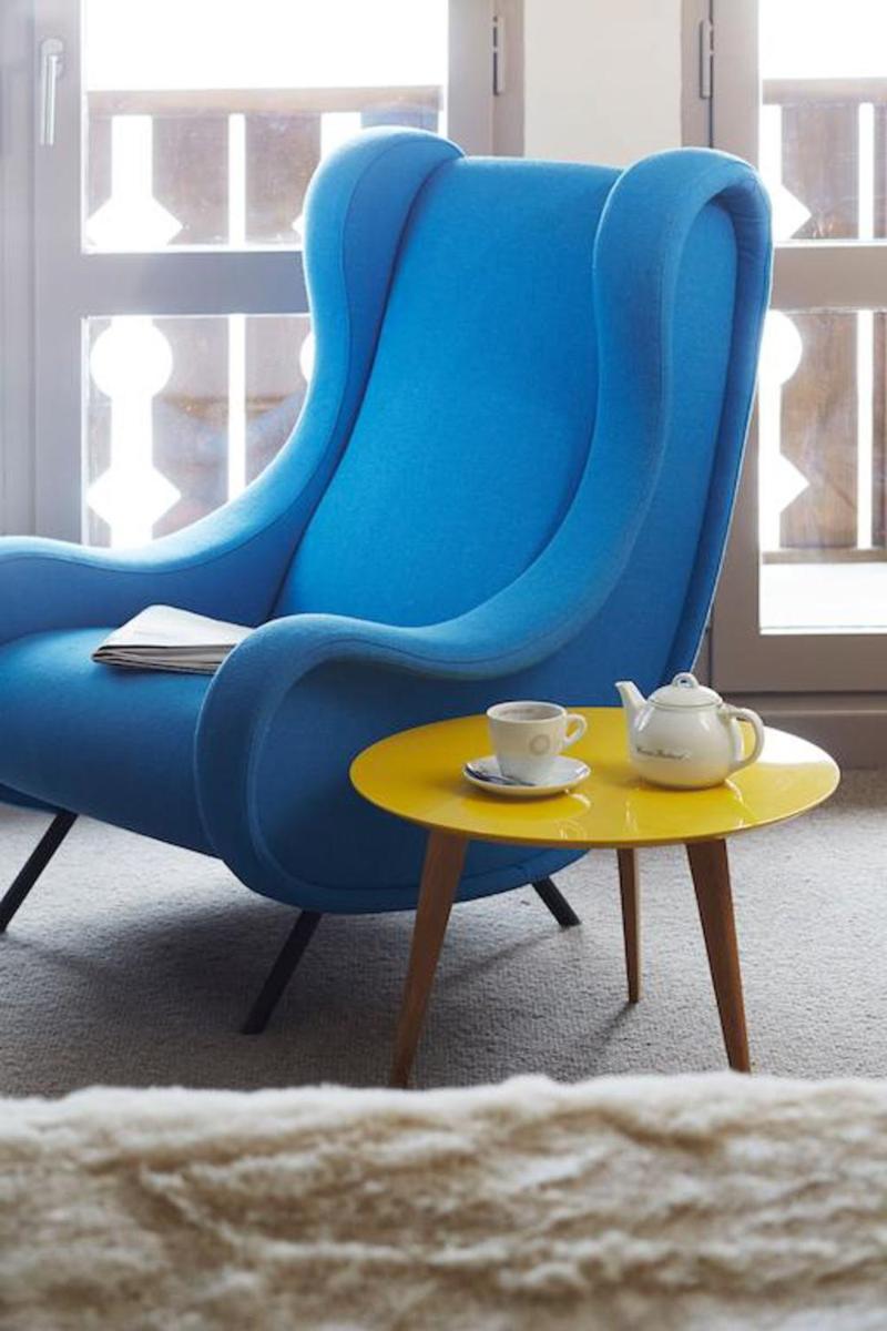 El diseño interior es un homenaje al estilo alpino chic de los años 50 y 60, con muebles de madera clara, tonos pastel y toques de diseño de época. La atmósfera es cálida, acogedora y sofisticada. Las habitaciones y suites están concebidas como capullos personales, ofreciendo espacios luminosos y pequeños balcones con vistas a las montañas o al prestigioso pueblo de Courchevel.