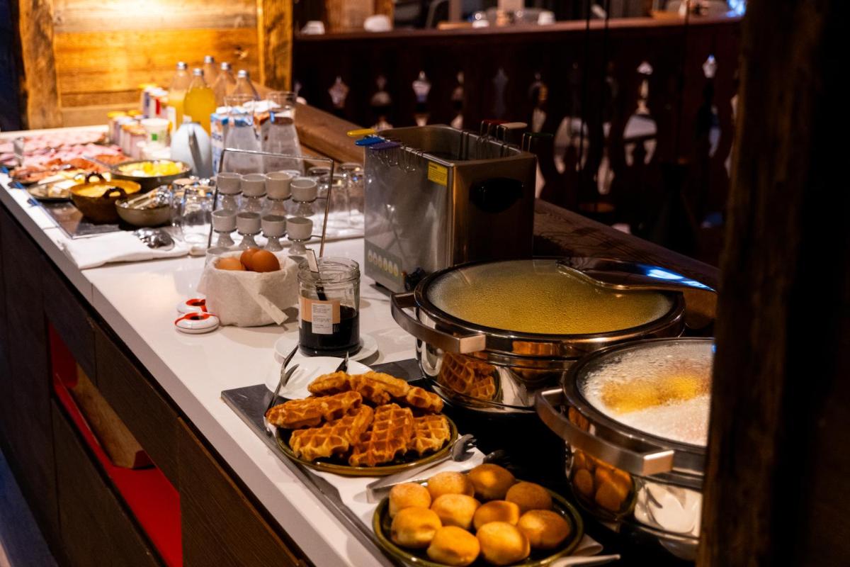 La experiencia culinaria es un punto fuerte. El restaurante propone una cocina que combina la tradición francesa con los sabores alpinos, utilizando ingredientes de la más alta calidad en un ambiente elegante. El desayuno, rico y cuidado, es celebrado como uno de los mejores momentos del día. El bar, con su atmósfera de club y su terraza soleada, es ideal para el après-ski y los cócteles por la noche.