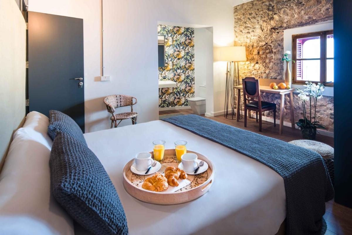 Las habitaciones han sido diseñadas como oasis de tranquilidad. Están equipadas con camas de alta calidad, ropa de cama de lujo y baños modernos. Muchas ofrecen una vista encantadora sobre los tejados del pueblo y las imponentes montañas de la Serra. El diseño minimalista, enriquecido con toques de color, garantiza un sueño reparador y un despertar agradable.