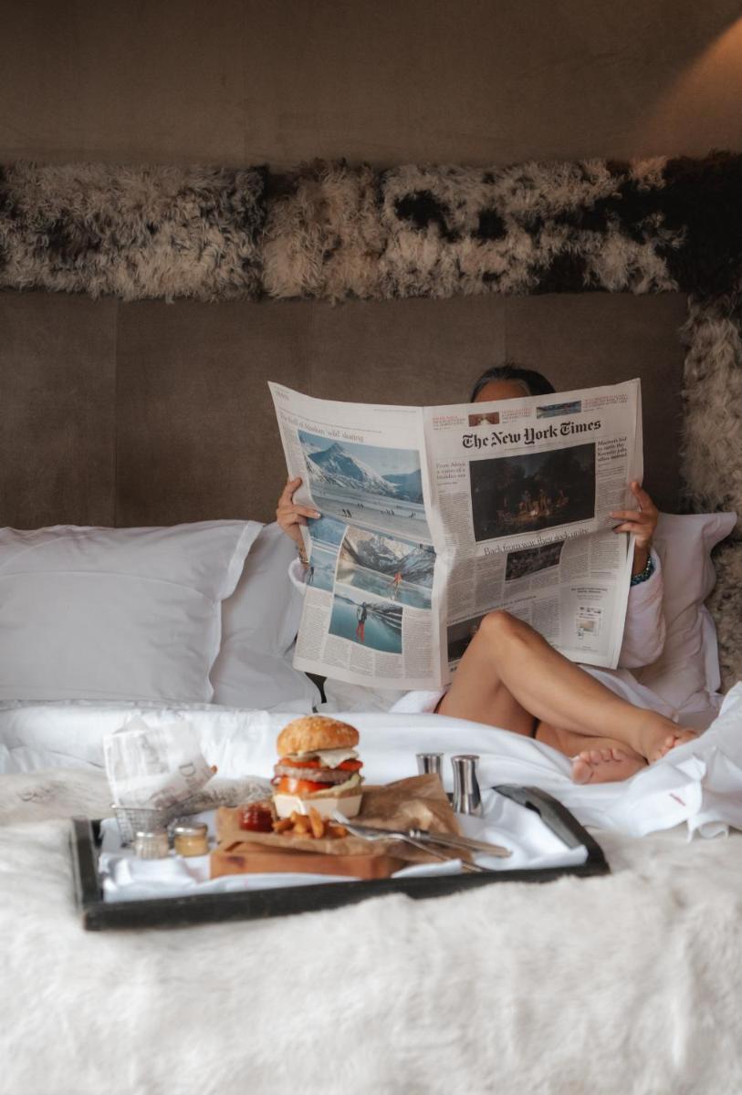 El diseño está inspirado en los grandes pabellones de caza y las aventuras polares, con una estética ecléctica que mezcla muebles de cuero envejecido, madera maciza, telas escocesas y objetos de colección. Las nuevas suites han sido reimaginadas para ofrecer un lujo refinado, con telas Ralph Lauren y vistas panorámicas de los Alpes, creando una atmósfera única, cálida y decididamente distintiva.