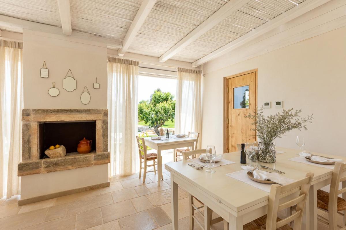 En la campiña de Ostuni, la Masseria Valentina conserva patios claros, logias sombreadas y vistas abiertas sobre los olivares. La luz atraviesa pérgolas y muros de piedra seca hacia interiores medidos donde cal, madera y tejidos naturales marcan un ritmo sereno. La estancia avanza despacio: mañanas silenciosas, pasos entre hileras y regresos al atardecer bajo cielos rosados. La ubicación alterna las calles blancas de Ostuni, olivares centenarios y el cercano Adriático. Hospitalidad discreta que deja a la materia y al paisaje llevar el relato.
