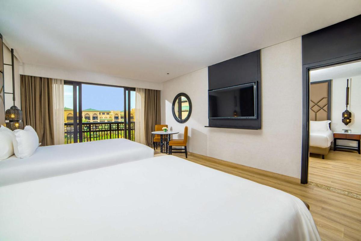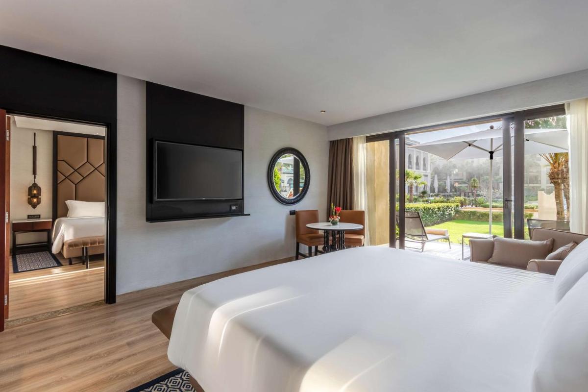 Las habitaciones y suites son lujosas y están diseñadas para ofrecer el máximo confort, con balcones privados que dan al Océano Atlántico, los jardines o el campo de golf. El diseño es elegante y contemporáneo, con toques de estilo marroquí. Cada detalle está cuidado para asegurar una estancia inolvidable en un ambiente de prestigio absoluto.