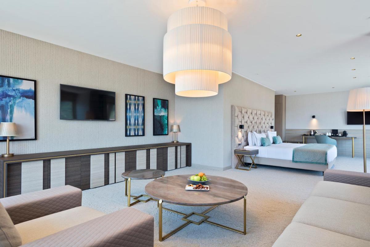Las habitaciones y suites se caracterizan por un diseño moderno y minimalista, con muebles elegantes y cómodos. Todos los alojamientos ofrecen balcones privados con vistas impresionantes al mar o al pinar circundante. La atención al detalle y la tecnología de vanguardia garantizan a los huéspedes una experiencia de estancia relajante y funcional.