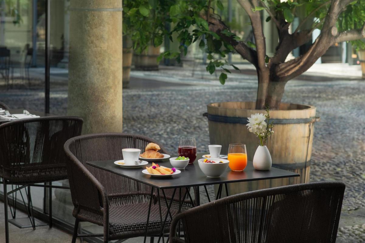 El hotel cuenta con una oferta gastronómica de alto nivel. El restaurante propone una cocina italiana y regional innovadora, utilizando ingredientes frescos. El punto culminante son las dos terrazas panorámicas en la azotea: aquí los huéspedes pueden disfrutar de cócteles y aperitivos con una vista de 360 grados de la ciudad y los Alpes, creando una experiencia inolvidable. Cada mañana se sirve un rico desayuno AntiOx buffet.