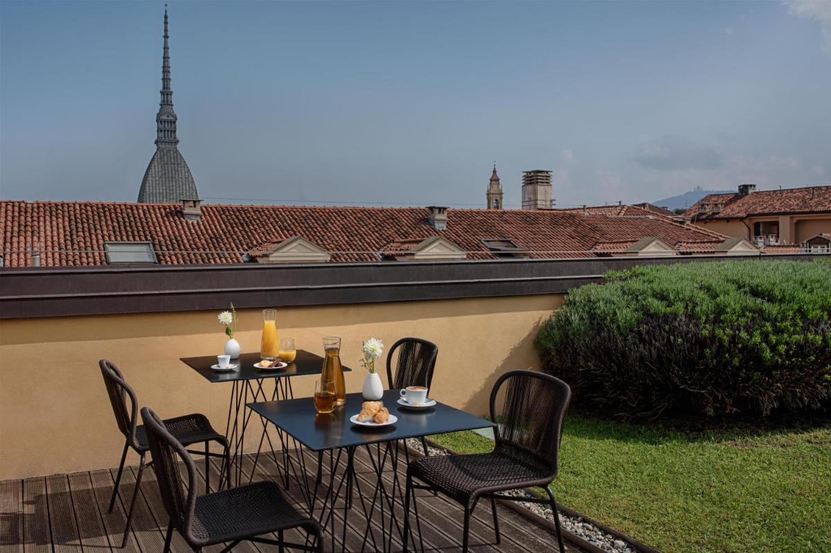 Las 160 habitaciones y suites están diseñadas para ofrecer el máximo confort, con un diseño contemporáneo, suelos de parqué y luz natural. Todos los alojamientos incluyen máquina de café, TV de pantalla plana, minibar y WiFi gratuito de alta velocidad. Muchas habitaciones ofrecen una vista impresionante de los tejados de Turín y la Mole Antonelliana, mientras que otras dan al tranquilo patio interno o a Piazza Carlina.