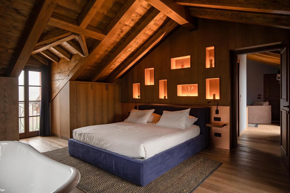 El hotel dispone de elegantes Habitaciones y Suites, cada una con un diseño único inspirado en la flora y fauna local. Los alojamientos se dividen en tres tipos: las amplias Suites Ático abuhardilladas, que ofrecen una vista panorámica ininterrumpida de los viñedos; las Habitaciones Legacy, inspiradas en el ciclo de las estaciones piamontesas; y las habitaciones Planta Jardín (Piano Garden), que cuentan con acceso directo al cuidado jardín de estilo italiano. Todas las habitaciones están equipadas con colchones Cocomat, minibar, Wi-Fi gratuito y baños de estilo spa.