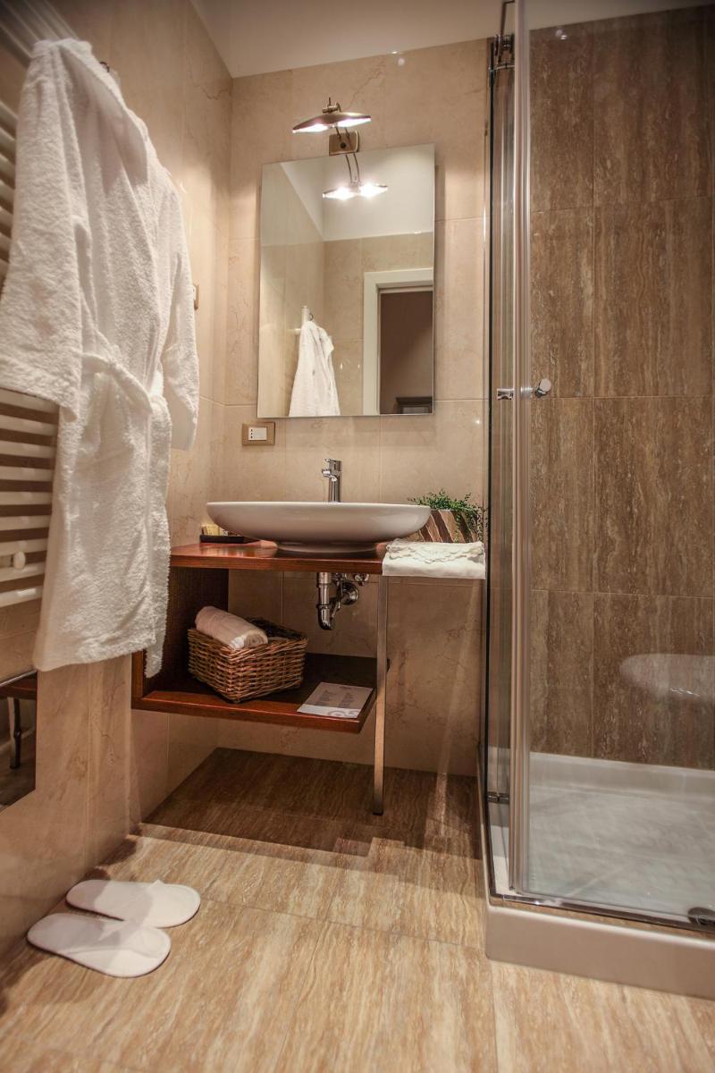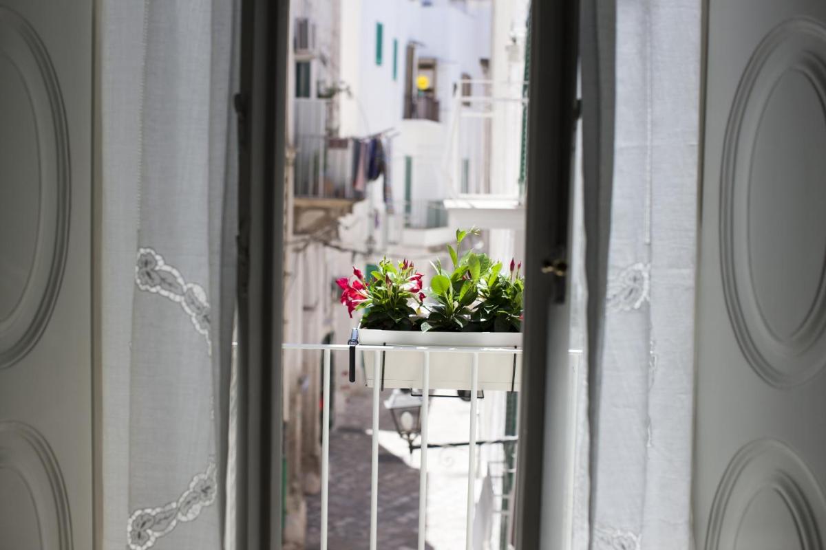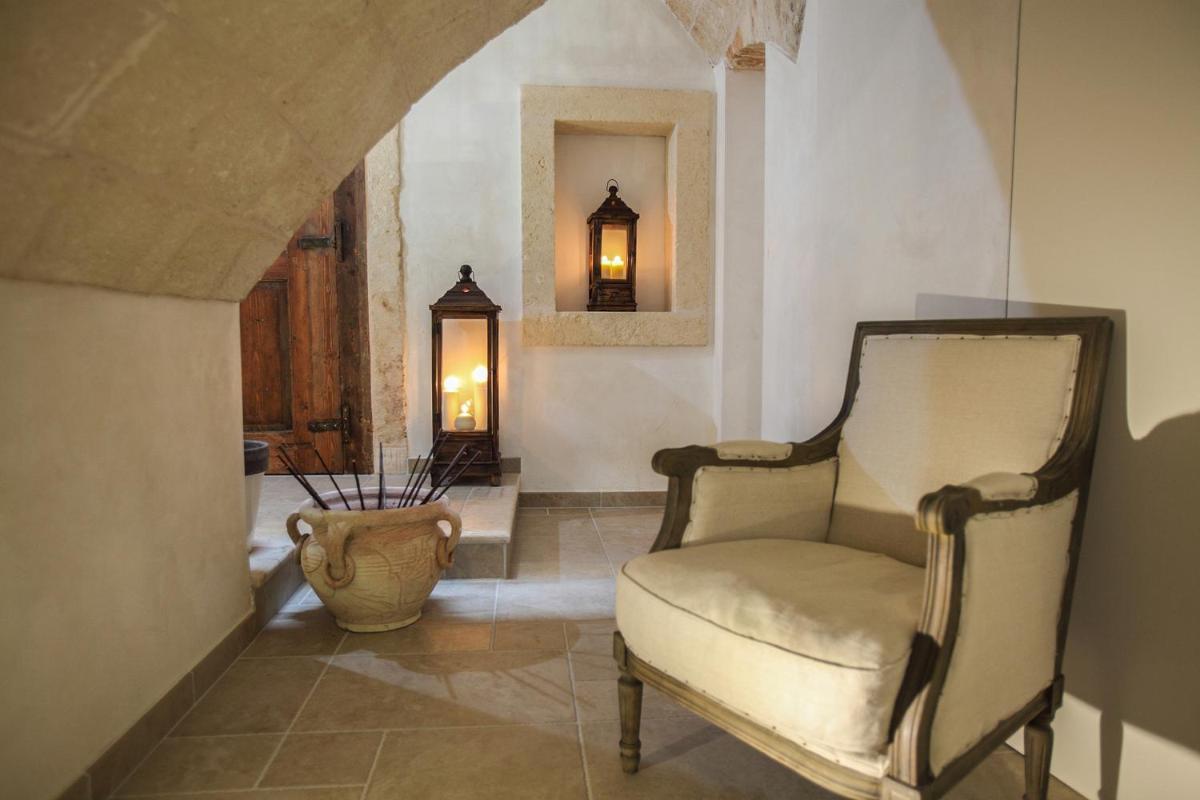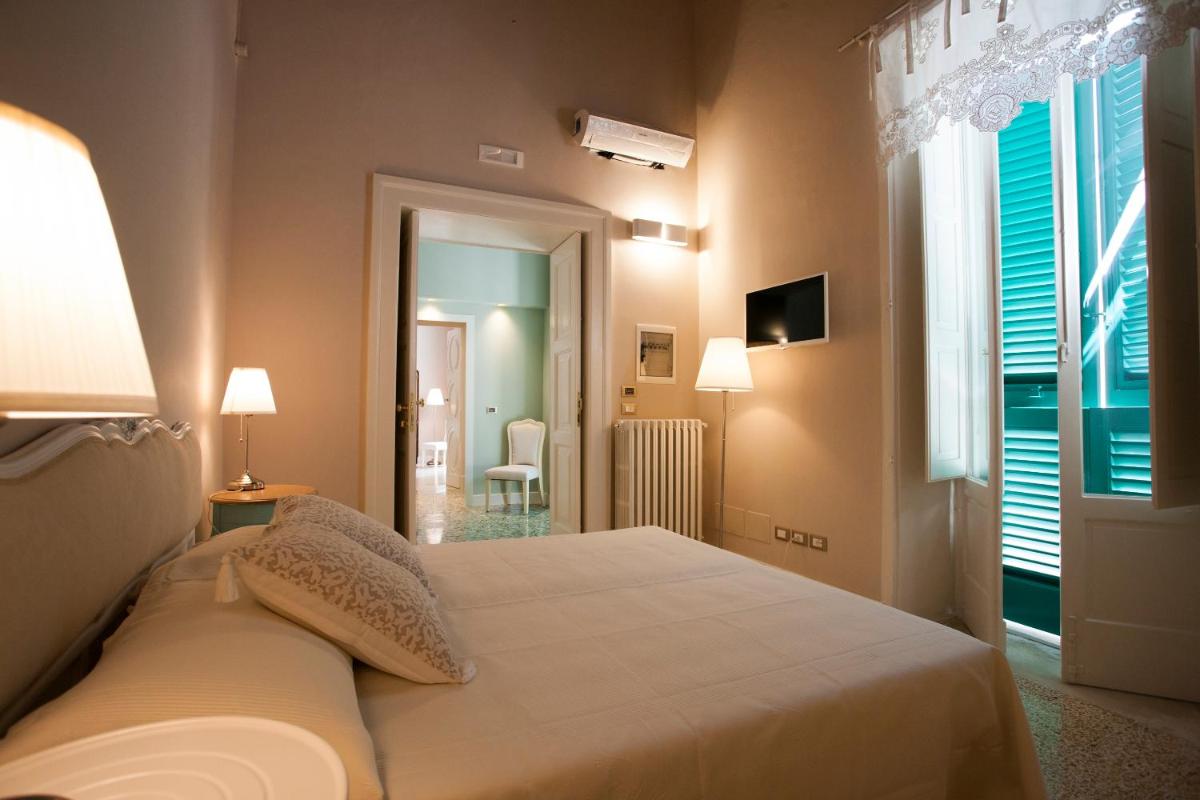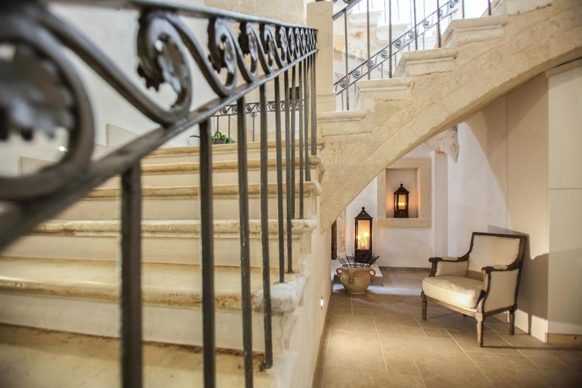 Las habitaciones y suites, caracterizadas por bóvedas de piedra a la vista y muebles refinados, reflejan el gusto y la historia del Palazzo. Cada alojamiento está equipado con aire acondicionado, minibar, TV vía satélite y un baño privado moderno. Las suites más prestigiosas ofrecen balcones con vistas al mar Adriático o a las calles blancas del casco antiguo, garantizando un despertar con un panorama inolvidable.