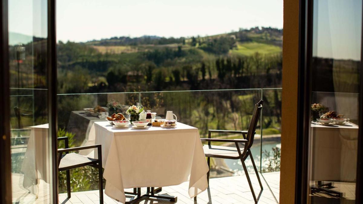 La oferta gastronómica se gestiona a través de cinco distintos restaurantes y bares, que proponen diferentes conceptos culinarios, todos centrados en la valorización de los productos locales y la producción propia de la finca (aceite EVO y vino). Entre ellos destacan el Restaurante Gourmet Ginkgo (cocina potenciadora al servicio del bienestar) y la Trattoria Le Marzoline, que ofrece platos tradicionales de la Emilia. El Desayuno continental buffet gratuito es rico en productos frescos y de kilómetro cero.
