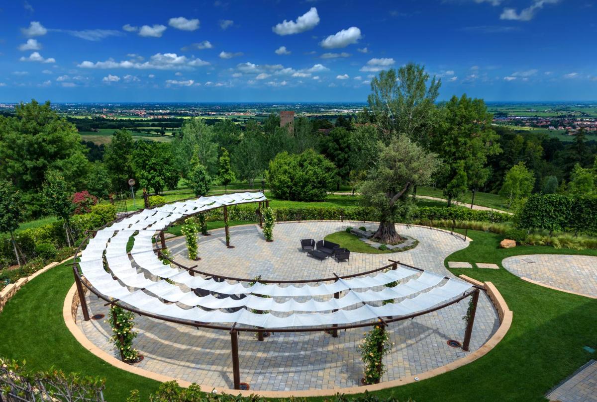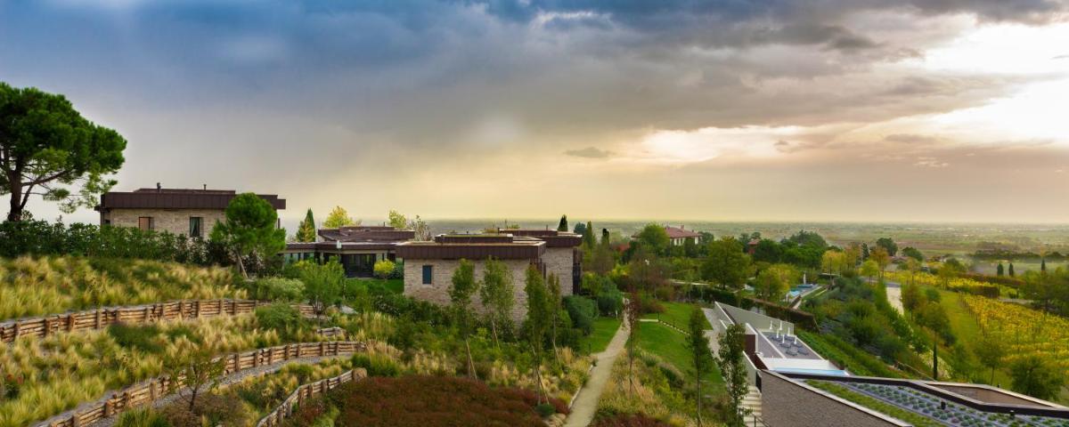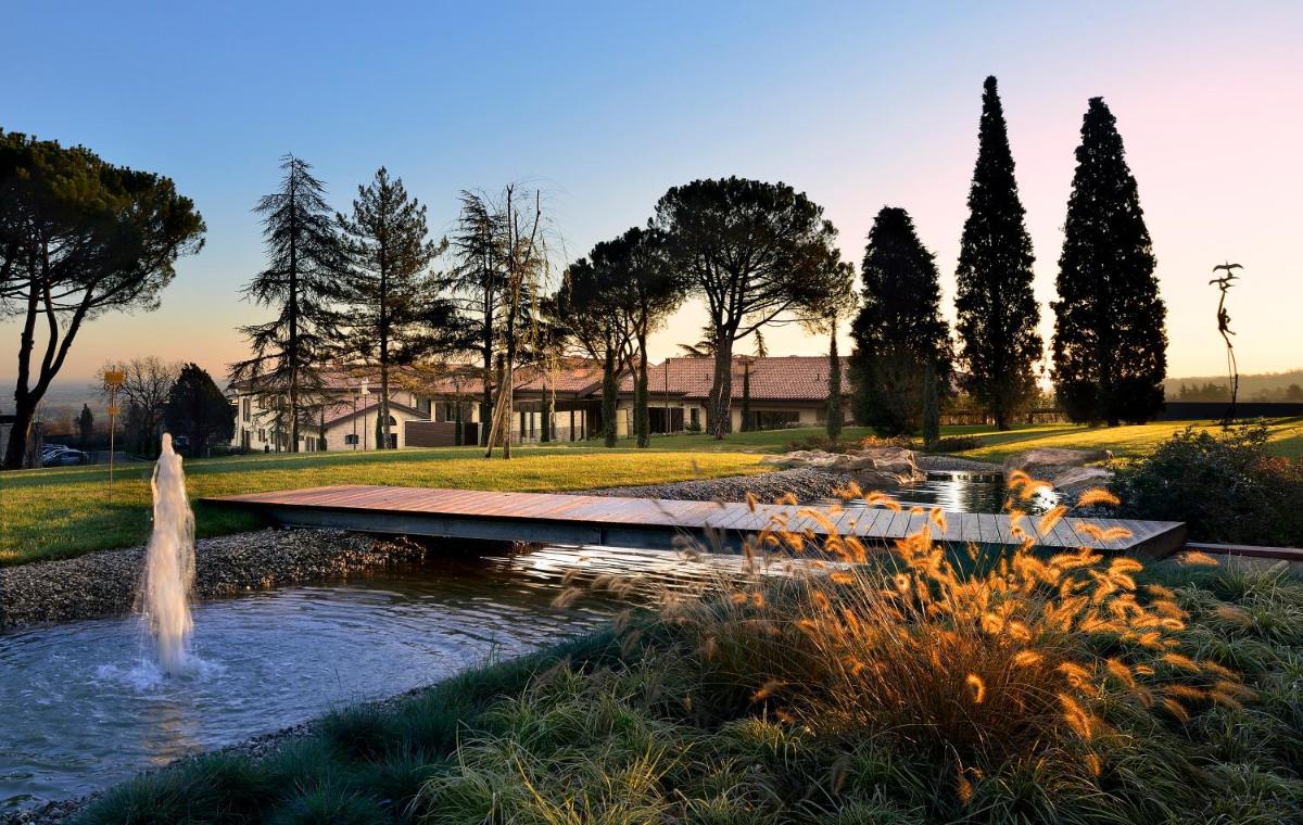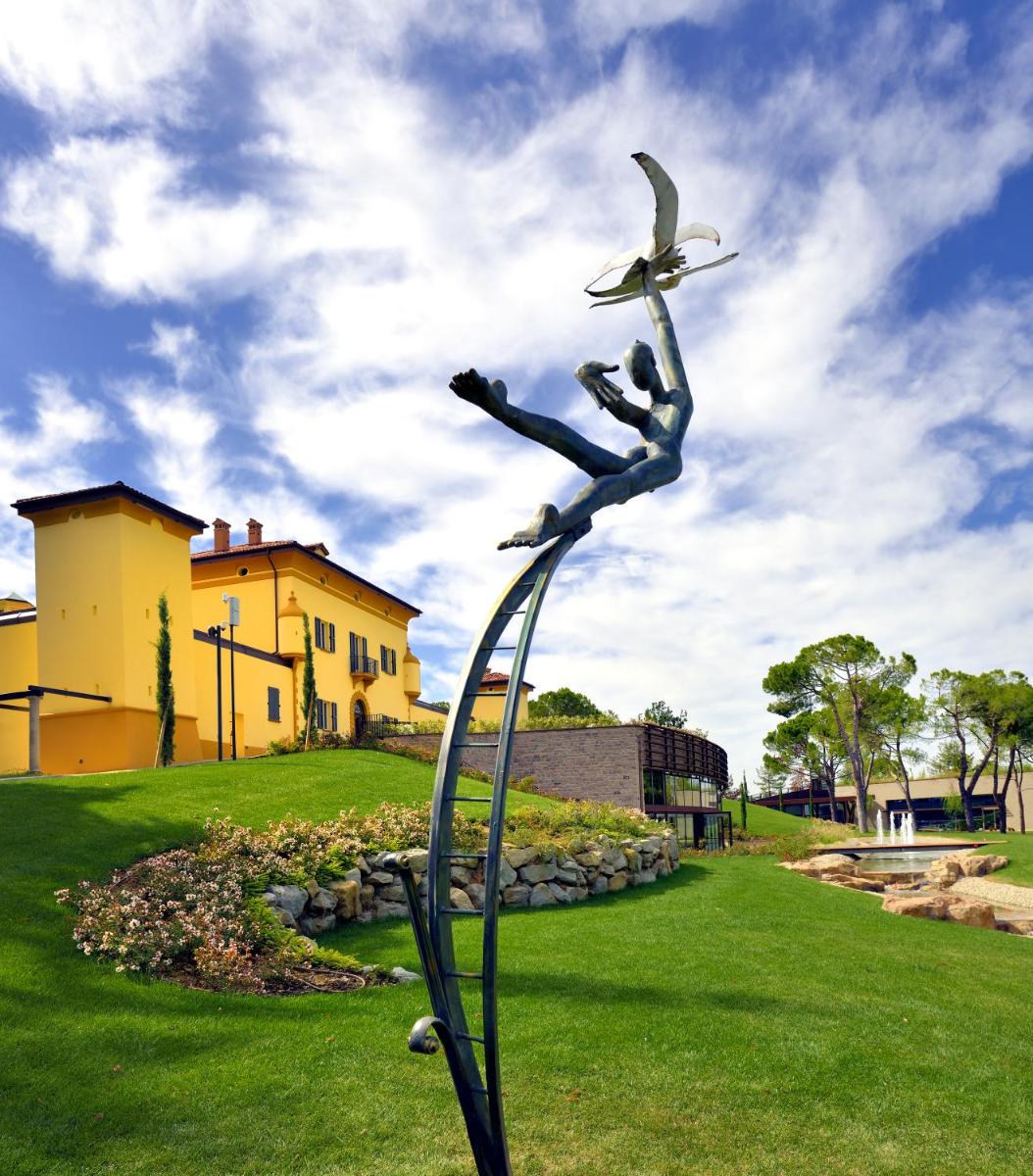 El Palazzo di Varignana Resort & SPA es un exclusivo hotel de lujo situado en el corazón de la campiña emiliana, a poca distancia de Bolonia. El resort se extiende sobre una vasta finca de 30 hectáreas que incluye olivares y viñedos, garantizando una experiencia de estancia de altísima calidad, serenidad y contacto con la naturaleza. La propiedad combina una villa histórica restaurada con modernos complejos residenciales, ofreciendo una mezcla única de encanto histórico y diseño contemporáneo.