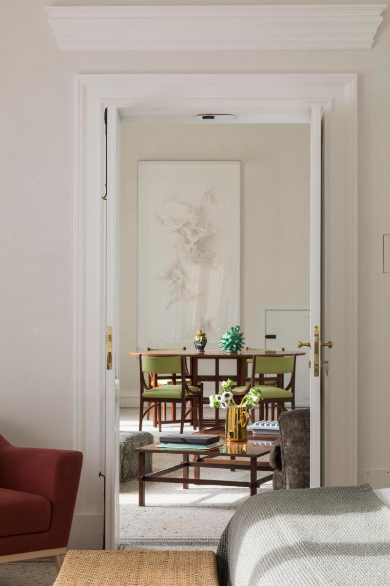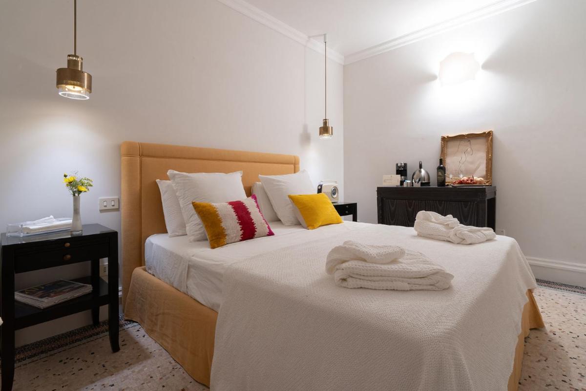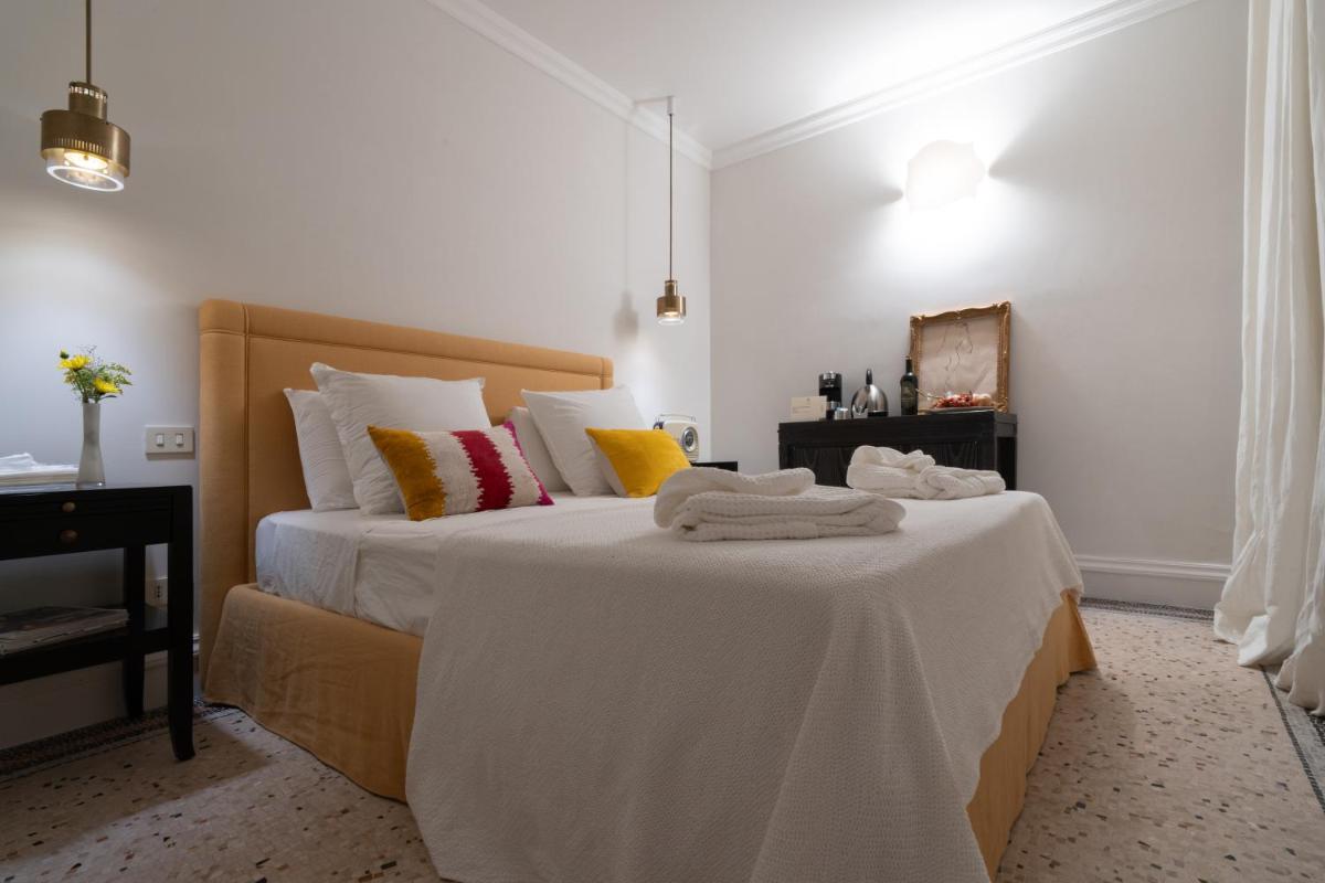 Dispone de habitaciones Classic, Superior y una Royal Suite exclusiva. Todas las estancias cuentan con mobiliario de diseño, obras de arte, baño privado, aire acondicionado, Wi‑Fi gratuito, calefacción, amenities, bidet y todas las comodidades modernas.