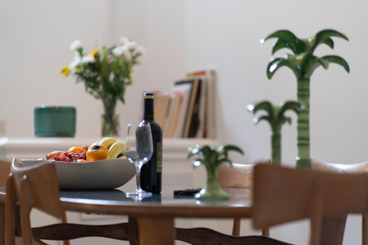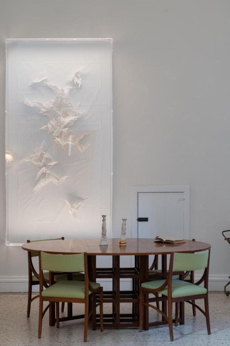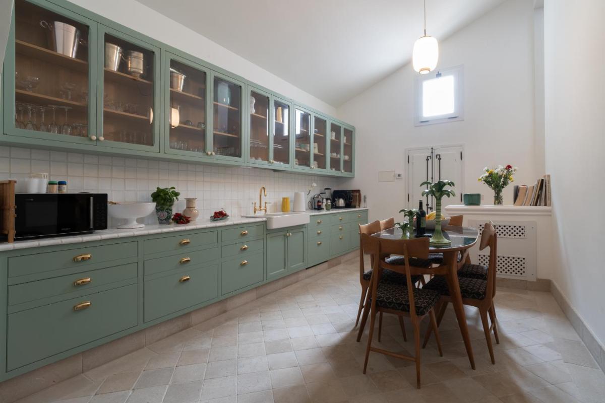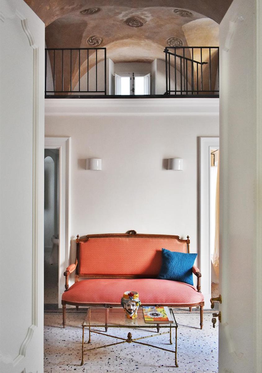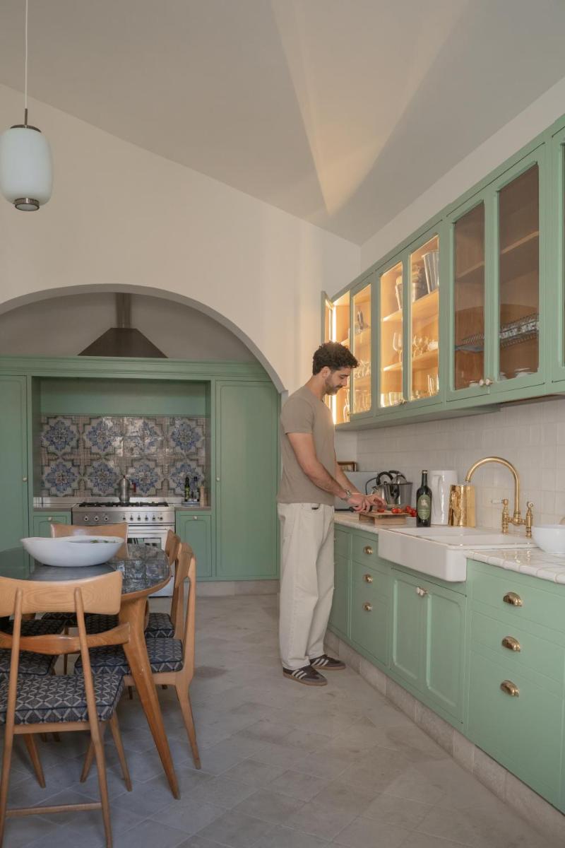 Los espacios comunes están decorados con arte moderno. La cocina de la Royal Suite es ideal para compartir comidas con productos típicos del Salento en un entorno acogedor.