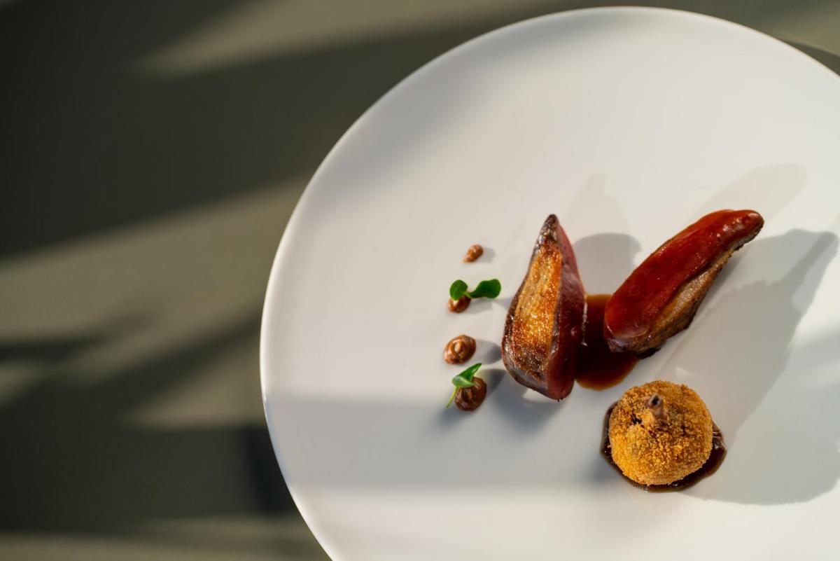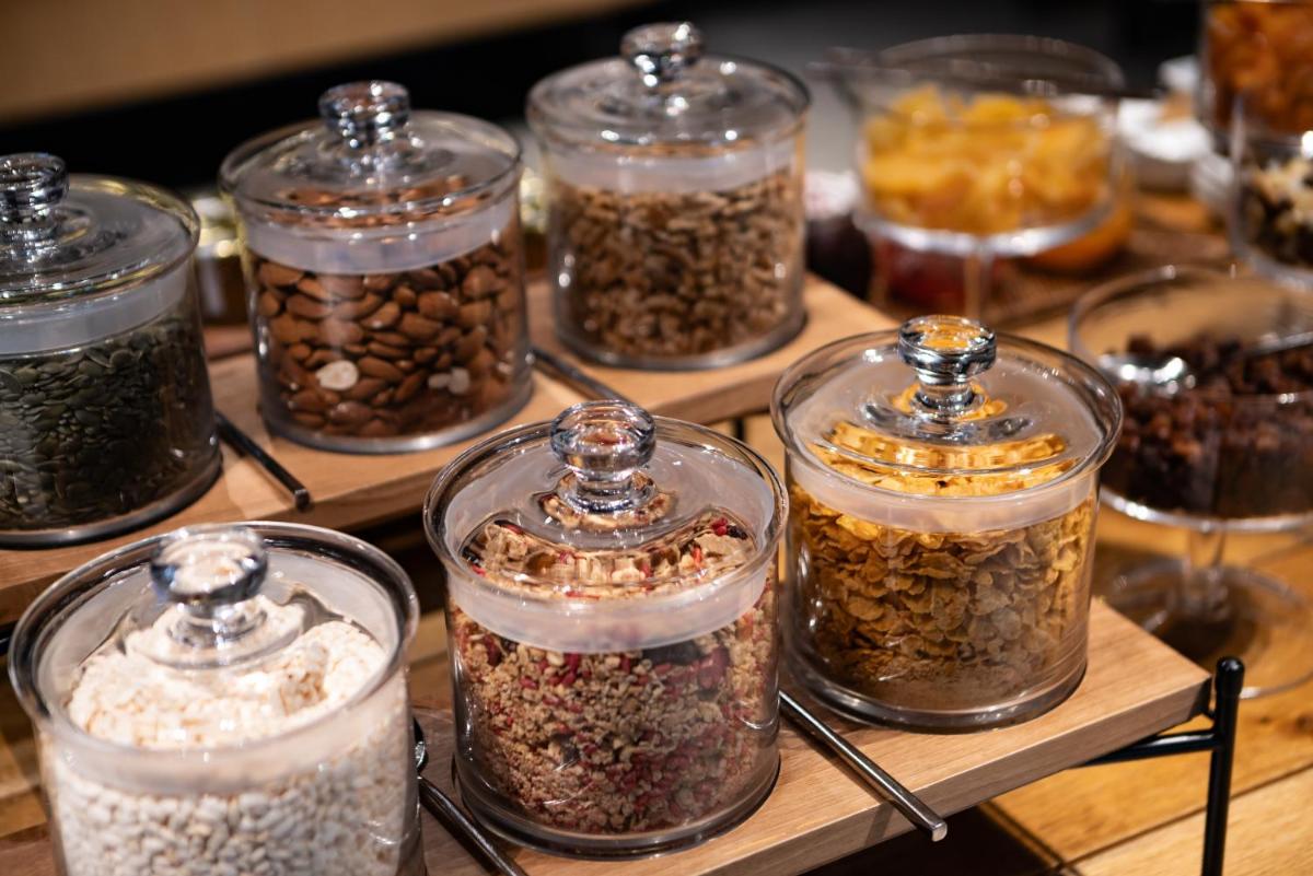 La experiencia gastronómica es dirigida por el Restaurante Aroma, un ambiente elegante que propone platos creativos basados en ingredientes locales y de temporada. El día comienza con un Desayuno Buffet Gratuito (continental y abundante, con opciones saludables) servido todas las mañanas. También están disponibles un Bar/Lounge y servicio de desayuno en la habitación. Los servicios adicionales incluyen Recepción 24 Horas, Aparcamiento Gratuito no vigilado, Gimnasio/Área de fitness y amplios espacios para eventos y bodas.