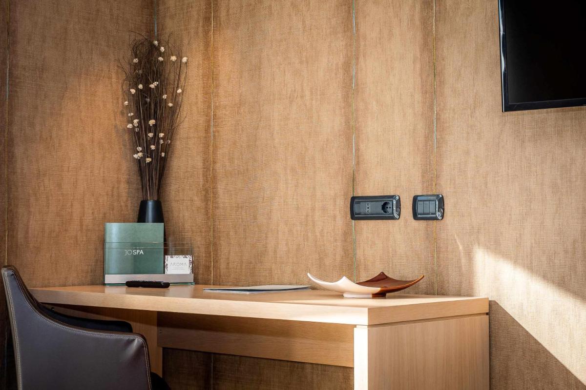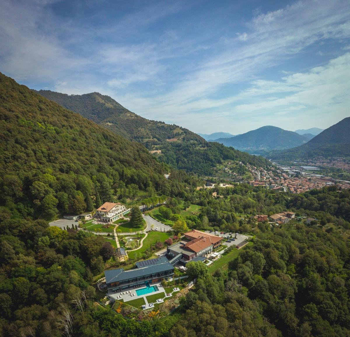 El Phi Hotel Piajo es un elegante Resort de 4 estrellas situado en una colina privada con vistas panorámicas sobre el Val Seriana, en el municipio de Nembro. Ideal tanto para estancias de ocio como de negocios, el hotel combina un diseño moderno y refinado con servicios de alto nivel, con un énfasis particular en el bienestar y la tranquilidad. Su posición estratégica permite disfrutar de la relajación de las colinas de Bérgamo sin dejar de estar cerca de la ciudad (unos 15 minutos en coche).