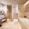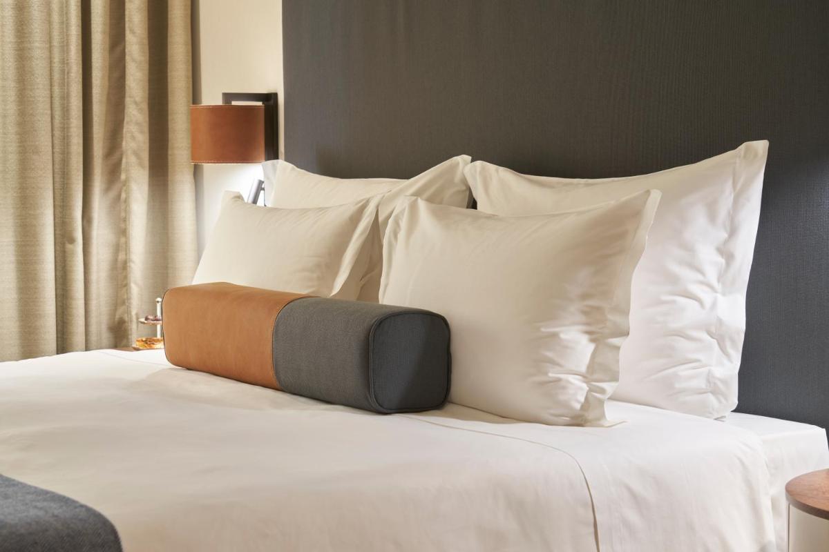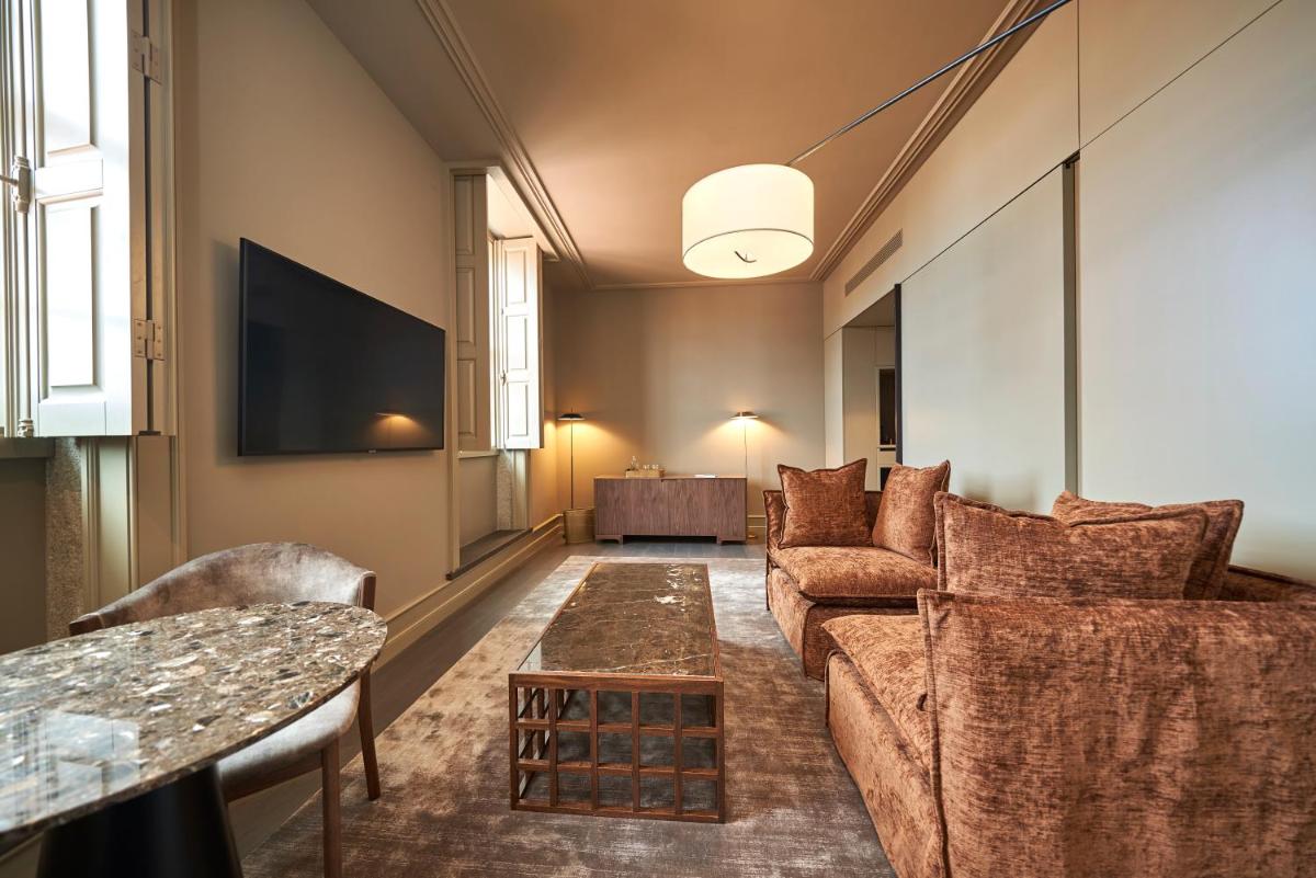 El hotel se desarrolla en un antiguo palacio nobiliario, del que conserva la imponente fachada y los detalles originales, como la antigua capilla. Las habitaciones y suites están amuebladas con elegancia sobria, fusionando elementos clásicos con toques de diseño moderno. La atención a la luz natural y el uso de materiales preciosos contribuyen a crear una atmósfera de lujo cálido y acogedor, garantizando la máxima quietud y confort a pesar de estar en pleno centro histórico.
