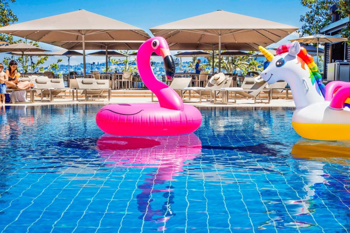 El hotel es reconocido por su excelencia culinaria, especialmente con el restaurante Bayview by Michel Roth, que cuenta con una estrella Michelin. Aquí se pueden saborear creaciones francesas e internacionales en un ambiente elegante con vistas panorámicas al lago, garantizando una experiencia gastronómica inolvidable.