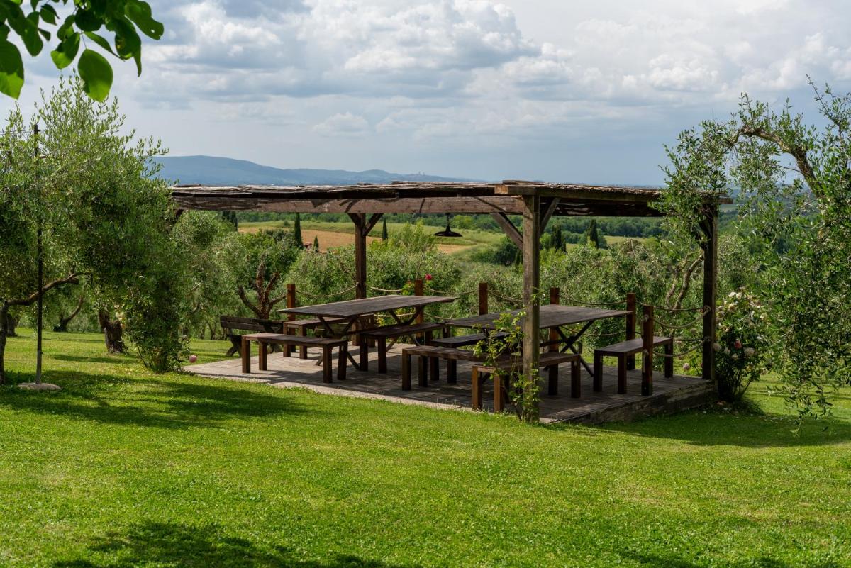 Las habitaciones y apartamentos se encuentran en las antiguas estructuras del pueblo. Los interiores, manteniendo las características arquitectónicas originales como vigas a la vista y suelos de terracota, están decorados con un elegante estilo rústico toscano. Todos los alojamientos están equipados con aire acondicionado, TV satélite, minibar y Wi-Fi gratuito. Los apartamentos también ofrecen zona de cocina y espacios más amplios, ideales para familias.