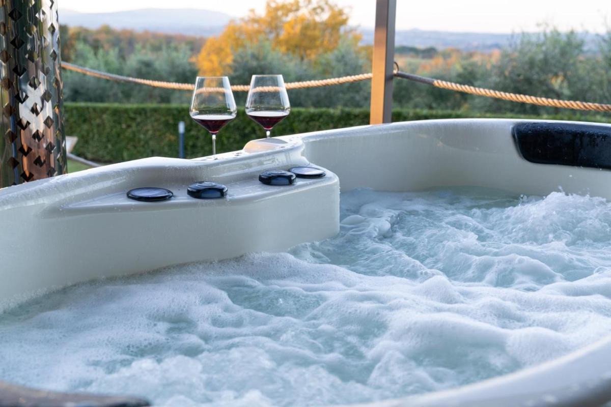 El punto focal de la relajación es la espléndida piscina exterior, situada en posición panorámica con una vista inigualable de las colinas de Siena. El Relais también cuenta con una pequeña área de bienestar con sauna y baño turco, perfecta para regenerarse después de un día de excursiones. Las áreas comunes incluyen un salón con chimenea y espacios exteriores para la lectura.