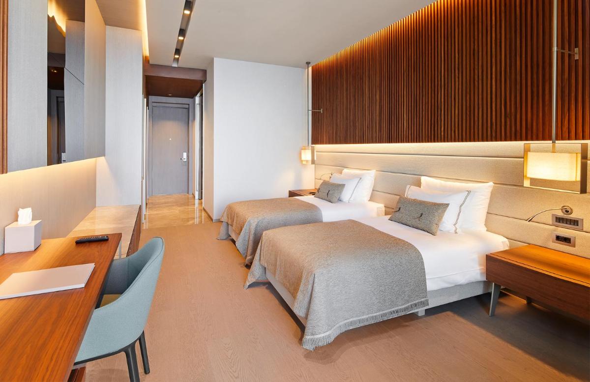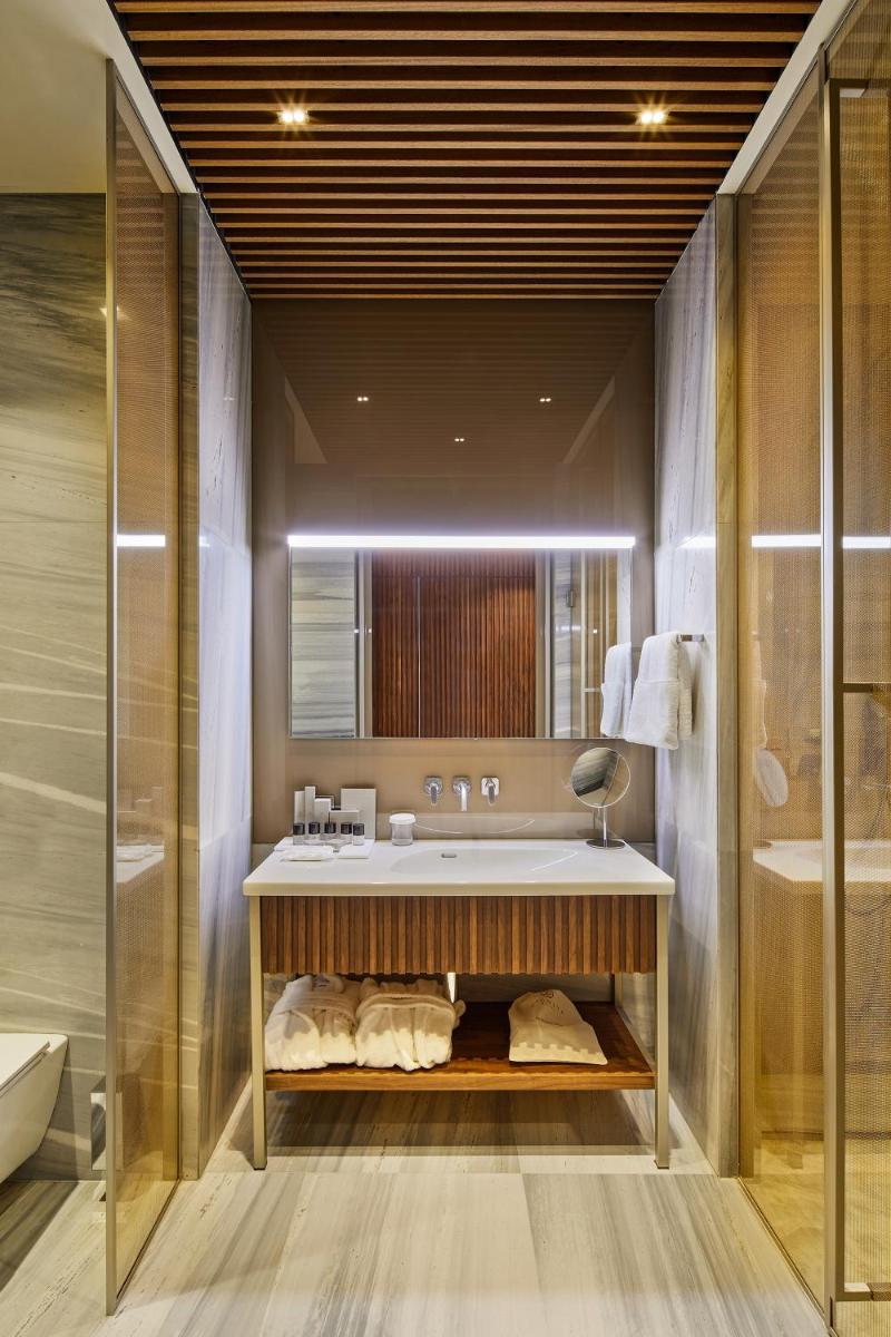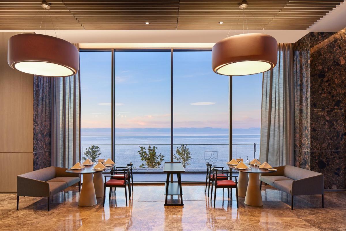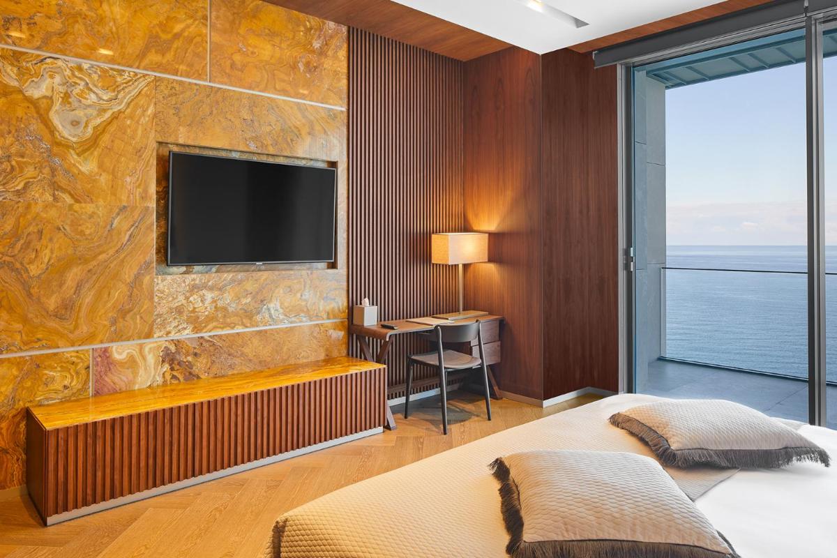 La arquitectura moderna del hotel se refleja en sus 138 habitaciones elegantemente amuebladas. Diseñados para un descanso óptimo, los alojamientos están insonorizados y cuentan con Smart TV de 43 pulgadas, artículos de minibar gratuitos (en algunas suites) y un menú de almohadas para personalizar el confort. Muchos ofrecen espléndidas vistas al mar, creando una atmósfera serena y luminosa.