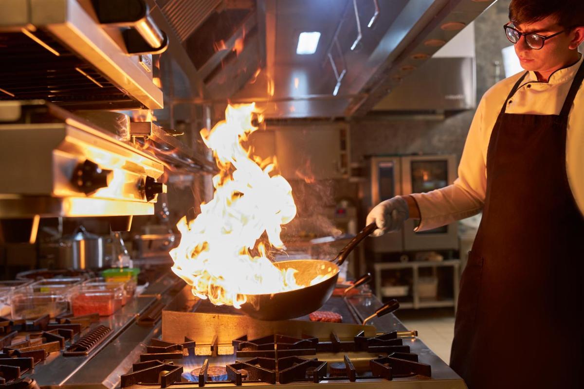 El Ricosta Hotel ofrece varias opciones gastronómicas con dos restaurantes en el lugar y un bar junto a la piscina. El día comienza con un desayuno buffet gratuito, que incluye opciones Kosher. Los restaurantes sirven platos que van desde la cocina local del Mar Negro hasta sabores internacionales, ofreciendo un viaje culinario completo.