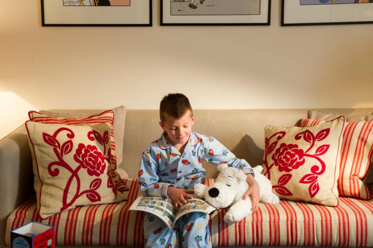 Las habitaciones y suites reflejan una elegancia sobria, con mobiliario diseñado a medida y obras de arte que celebran la cultura belga, incluyendo los famosos cómics. Cada detalle está cuidado para garantizar el máximo confort, haciendo de cada espacio un refugio de paz en el centro de la ciudad.