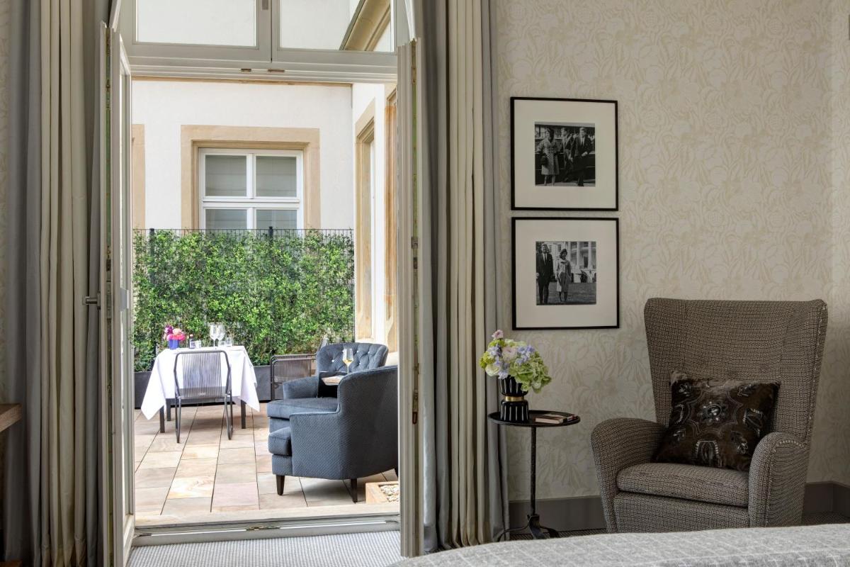 El hotel se desarrolla alrededor de un hermoso patio interior, un oasis verde que es el corazón social de la estructura, ideal para cenas al aire libre o un aperitivo. Las habitaciones y suites reflejan un estilo elegante y cálido, con mobiliario de lujo y una atención particular a los detalles artesanales.