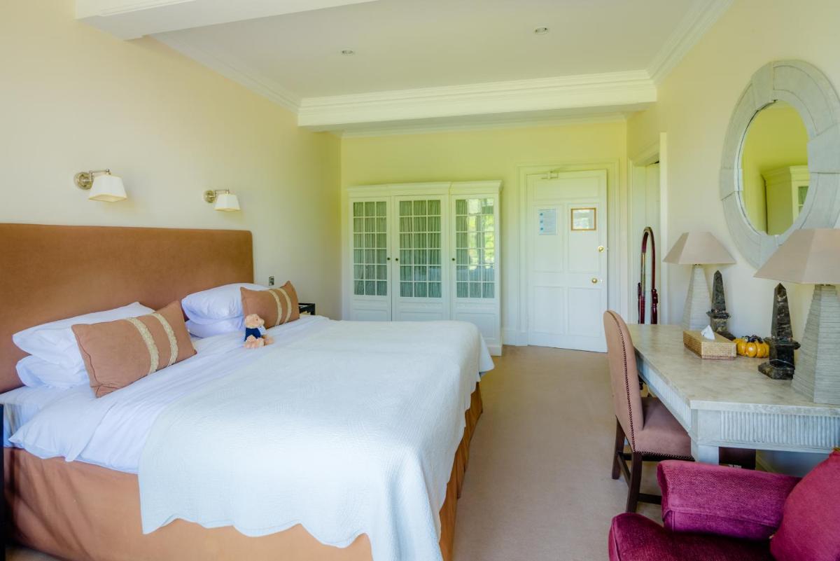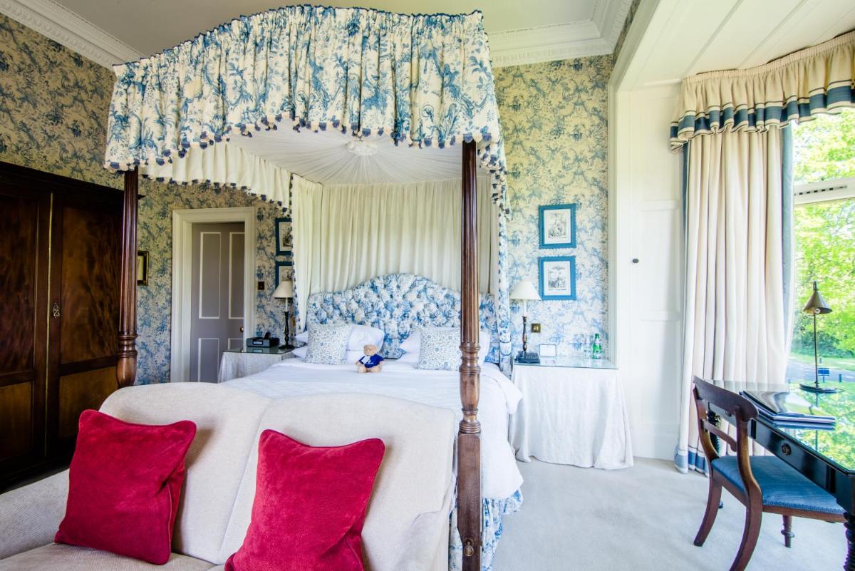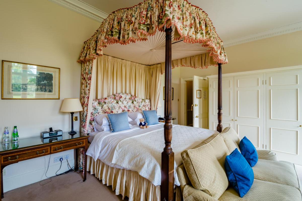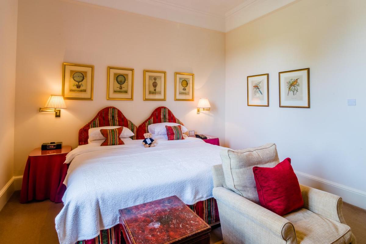 Los alojamientos son suntuosos, cada uno decorado individualmente para reflejar el estilo clásico y la herencia aristocrática del edificio. Muchas habitaciones cuentan con elementos originales, chimeneas de mármol y vistas impresionantes de los jardines y el campo de golf. El confort está garantizado por comodidades modernas y atenciones personalizadas.