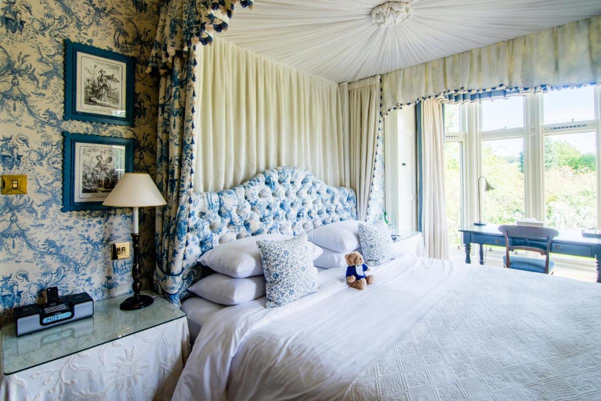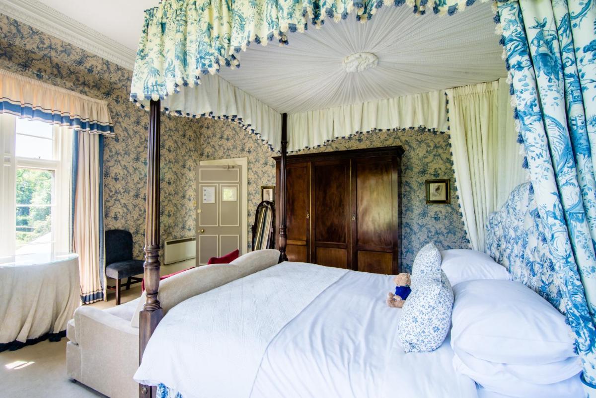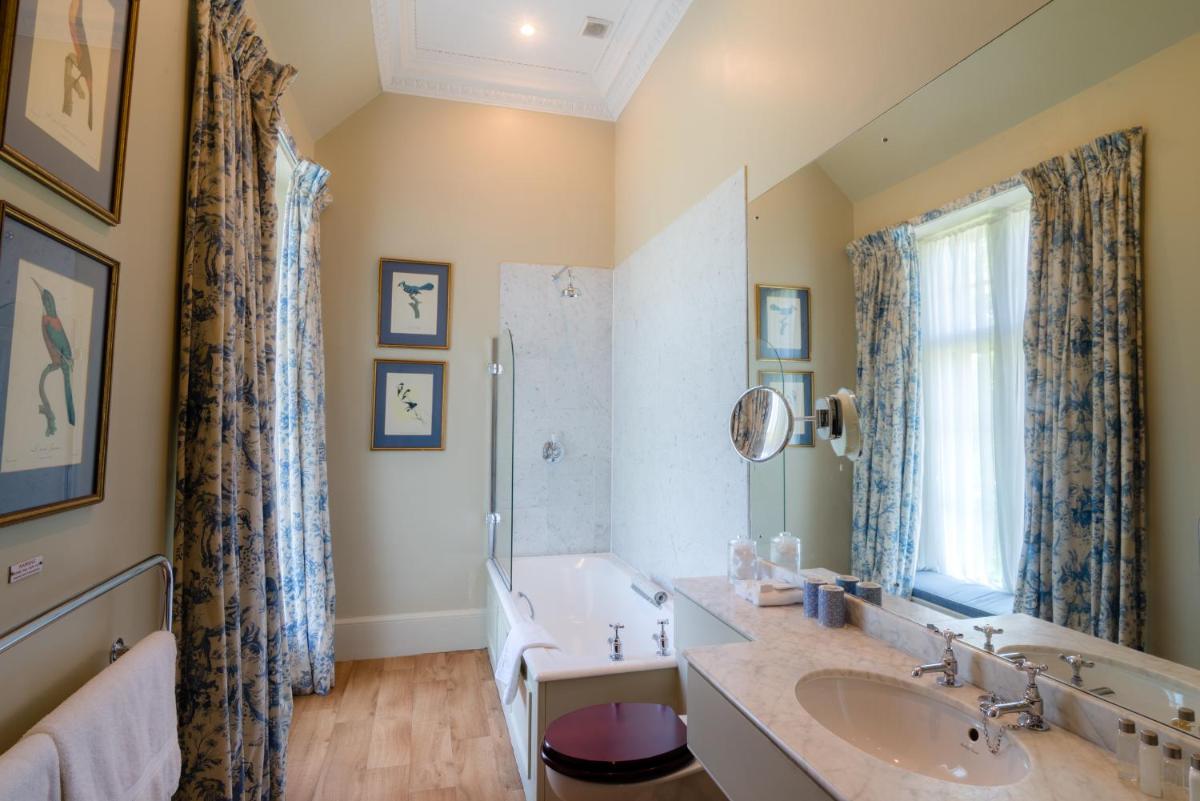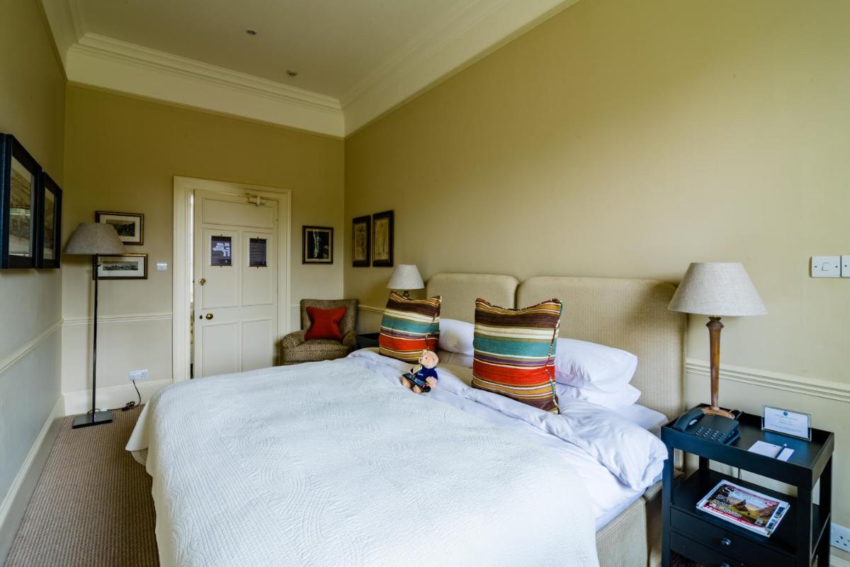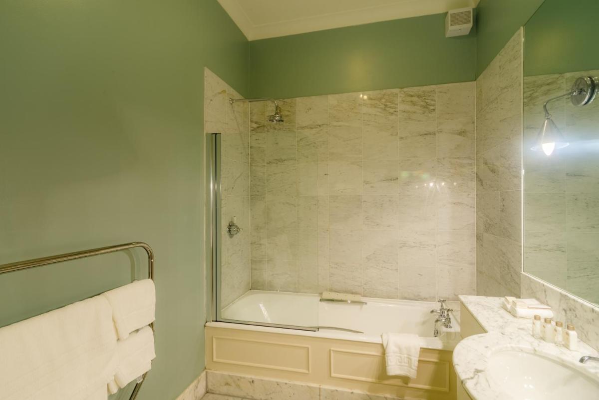 Los alojamientos son suntuosos, cada uno decorado individualmente para reflejar el estilo clásico y la herencia aristocrática del edificio. Muchas habitaciones cuentan con elementos originales, chimeneas de mármol y vistas impresionantes de los jardines y el campo de golf. El confort está garantizado por comodidades modernas y atenciones personalizadas.