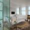 Las habitaciones y suites se caracterizan por un diseño minimalista y lineal, que sirve de lienzo en blanco para elementos surrealistas sutiles, pero impactantes. Grandes ventanales ofrecen una vista única de Fitzrovia, mientras que los baños de mármol y las camas suntuosas aseguran la máxima relajación. El uso inteligente de la luz y las texturas crea un ambiente tranquilo y sofisticado, contrastando con la energía vibrante de las áreas comunes.