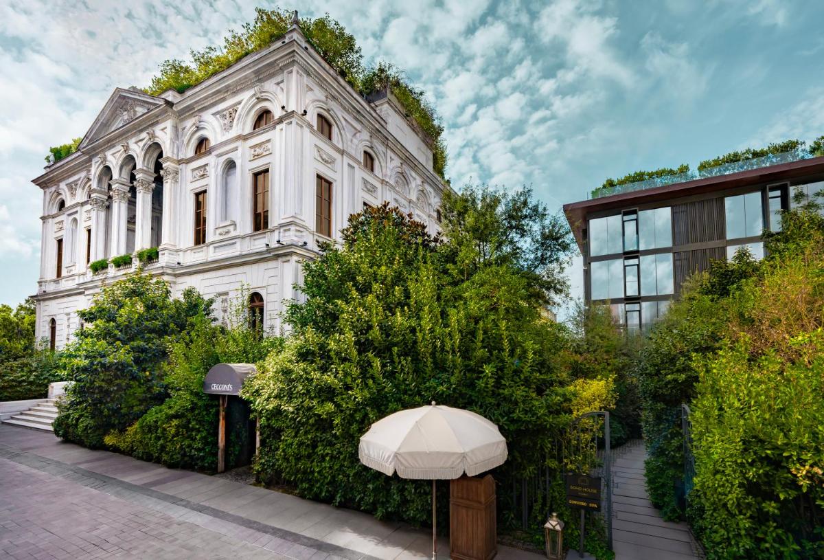 El edificio en sí es una maravilla histórica: un antiguo palacio diplomático genovés del siglo XIX que ha sido bellamente restaurado. Conserva muchos de sus detalles originales, ofreciendo un contexto de gran encanto histórico que se fusiona perfectamente con el diseño moderno y sofisticado típico de la marca Soho House.