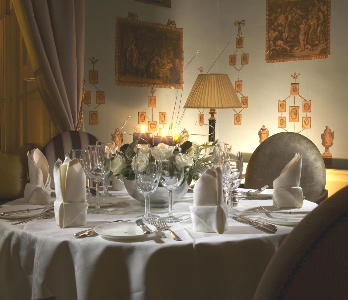 El hotel mantiene intacta su opulencia Georgiana, con interiores que presentan intrincadas yeserías, suelos de mármol y chimeneas originales. Las habitaciones y suites están lujosamente amuebladas con muebles de época y telas finas, ofreciendo una atmósfera de grandeza y confort.