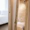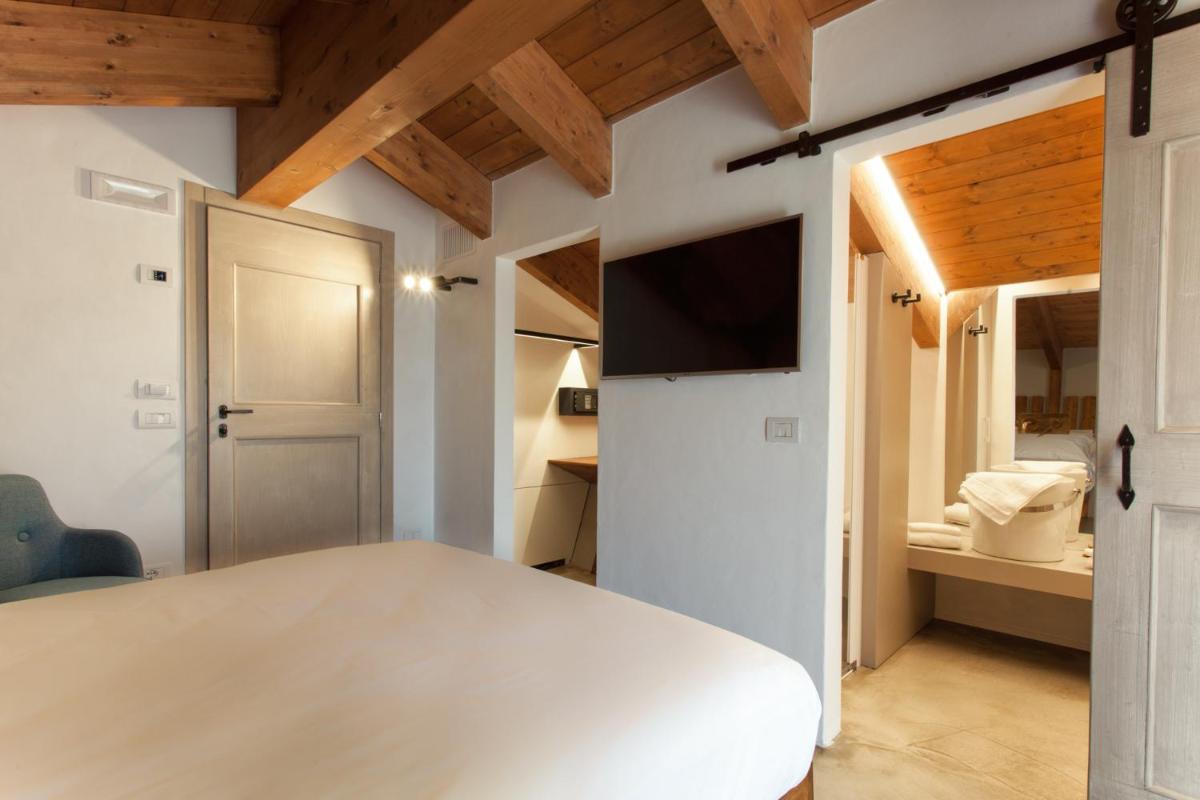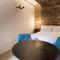 Las habitaciones y apartamentos están amueblados con un estilo que evoca la atmósfera medieval, con vigas de madera a la vista y detalles rústicos, pero están equipados con todas las comodidades modernas. Cada unidad está climatizada, incluye TV, minibar (los apartamentos tienen cocinas americanas equipadas) y un baño privado funcional. Algunas habitaciones ofrecen una vista sugerente de las murallas del castillo. El ambiente es acogedor y familiar, asegurando un descanso agradable.