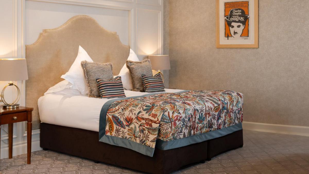 Las habitaciones y suites están amuebladas con la elegancia de una casa señorial, con muebles de lujo, ricas telas y baños de mármol. Muchas disfrutan de vistas espectaculares de la bahía y la costa, proporcionando un refugio tranquilo y opulento a solo minutos de la capital de Irlanda del Norte.