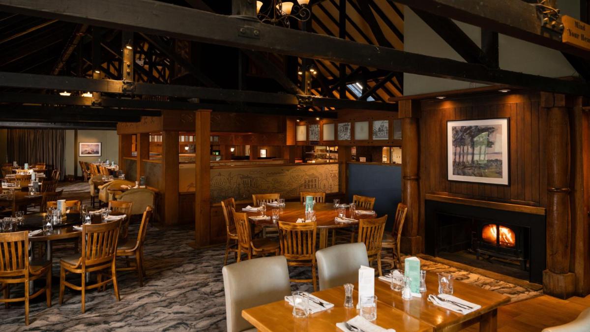 El restaurante principal, 'Vespers', ofrece una experiencia gastronómica refinada, centrada en los mejores productos del Ulster en un entorno elegante. El hotel también es famoso por su suntuoso Té de la Tarde, que se puede disfrutar con vistas a los jardines y la bahía, en una atmósfera de lujo tradicional.