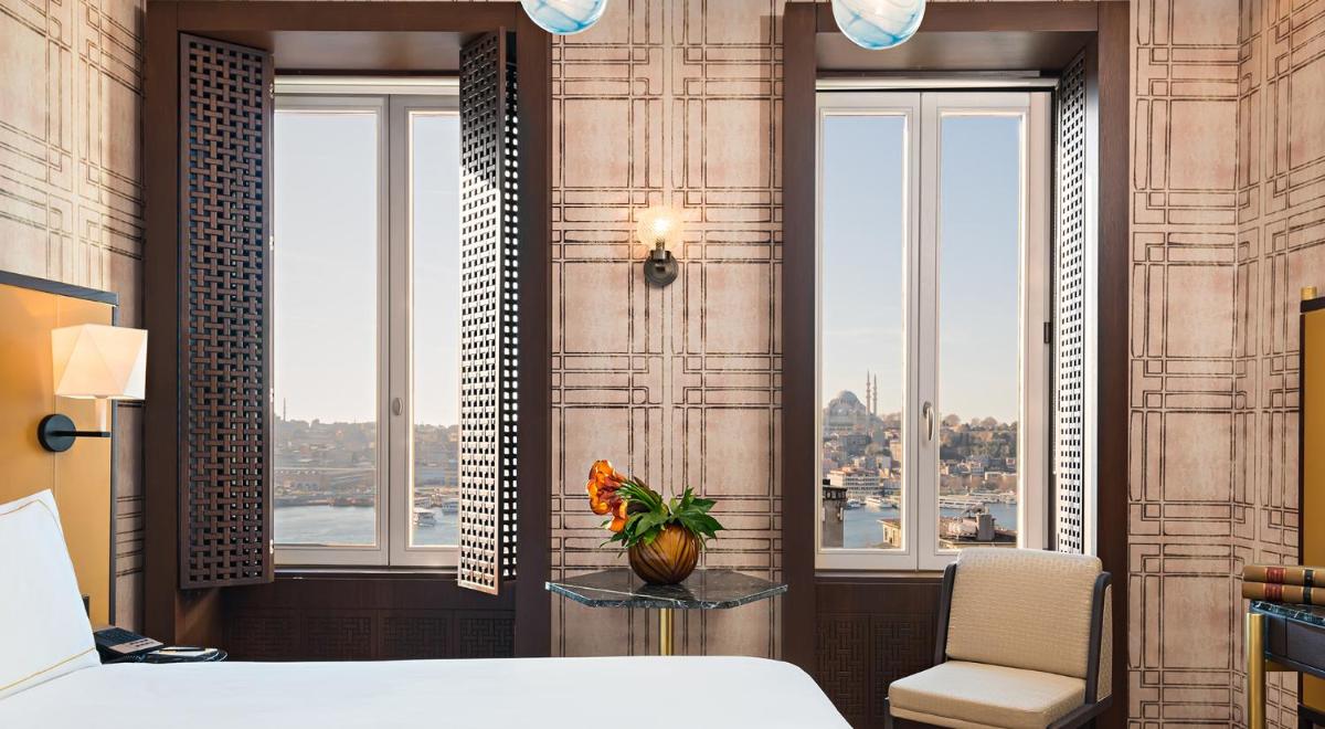Las habitaciones y áreas comunes son un homenaje al rico pasado y a la energía contemporánea de Estambul. La decoración combina telas lujosas, tonos profundos y detalles artesanales. Muchas habitaciones ofrecen vistas cautivadoras de la Torre de Gálata, el Cuerno de Oro o los tejados históricos del distrito, sumergiendo al huésped en la atmósfera única de la ciudad.