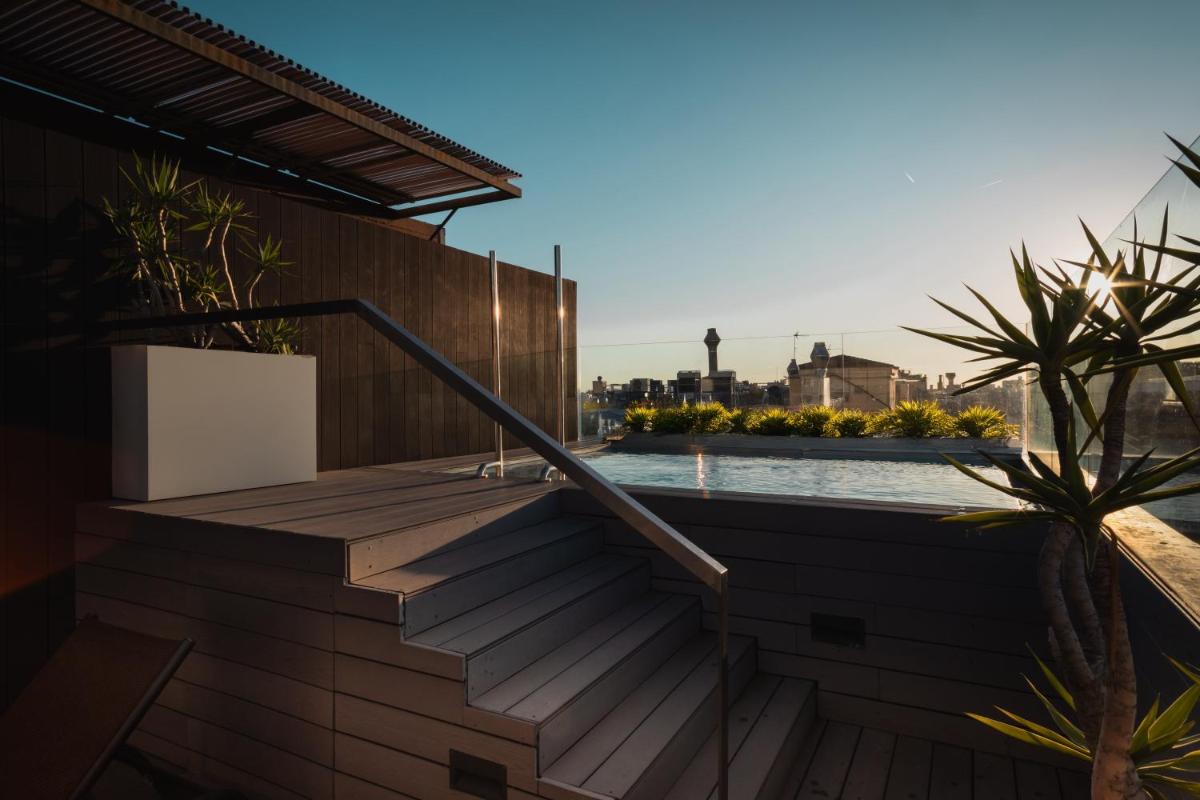 El hotel cuenta con una terraza en la azotea que ofrece un oasis de relajación con una pequeña piscina (plunge pool) y un solárium, ideal para disfrutar del sol de Barcelona con una vista espectacular sobre los tejados del Eixample. Es el lugar perfecto para un momento de tranquilidad o un aperitivo nocturno en un entorno chic y privado.